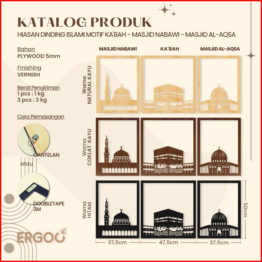 Ergoo Hiasan Dinding Islami Motif Ka Bah Masjid Nabawi Masjid Al-aqsa