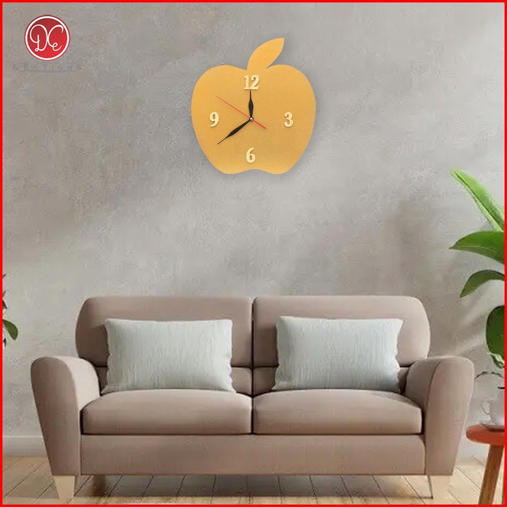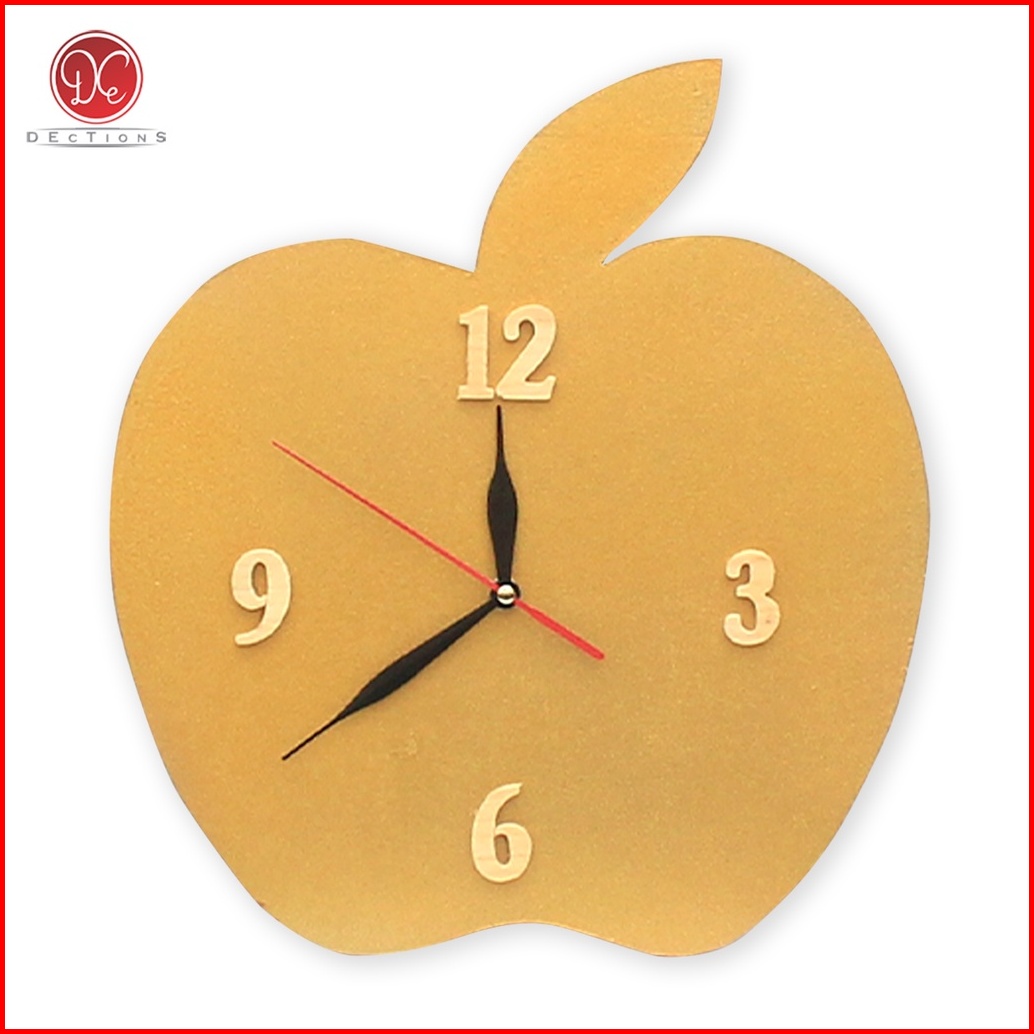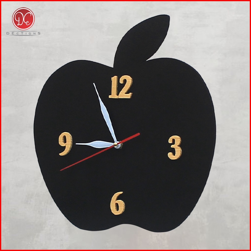 Dections Jam Dinding Apple Kayu Angka Timbul Unik Minimalis Hiasan Dekorasi Aesthetic
