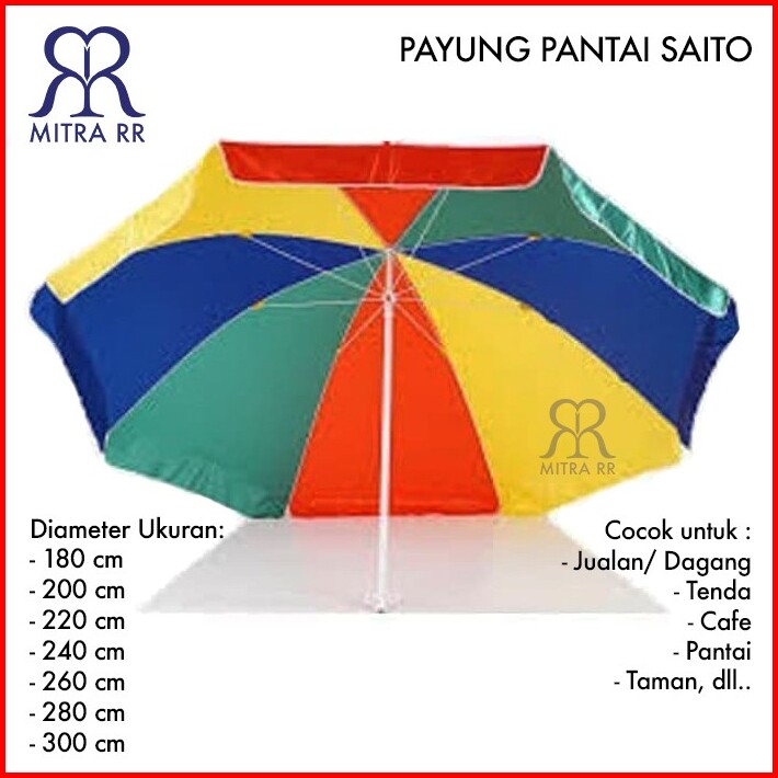 Payung Pantai Pelangi Taman Cafe Tenda Jualan Dagang Parasol Saito 180-200 Cm - Free Packing Bubble Wrap Dan Dus