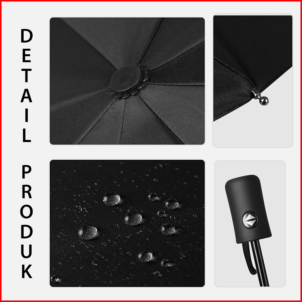 Hugo Payung Lipat Otomatis Buka Tutup Polos Anti Uv Lipat Tiga Premium Quality