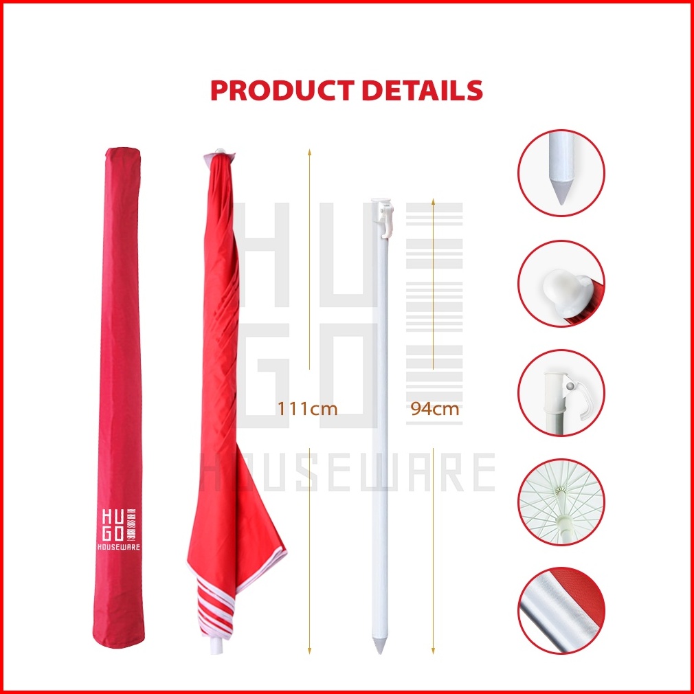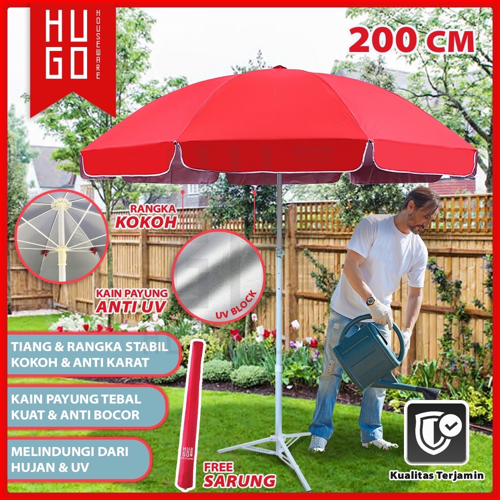 Hugohouseware Payung Jualan 200 Cm Payung Tenda Taman Pantai Cafe Bazar Lapak Dengan Sarung