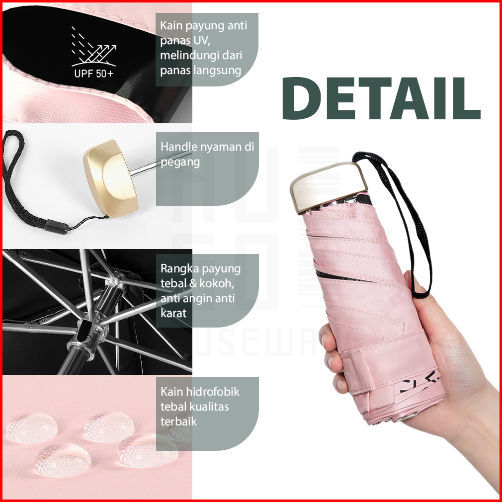 Hugo Payung Lipat Mini Anti Uv Sinar Matahari Payung Mini Polos Portable Cute Umbrella Hampers Gift Premium
