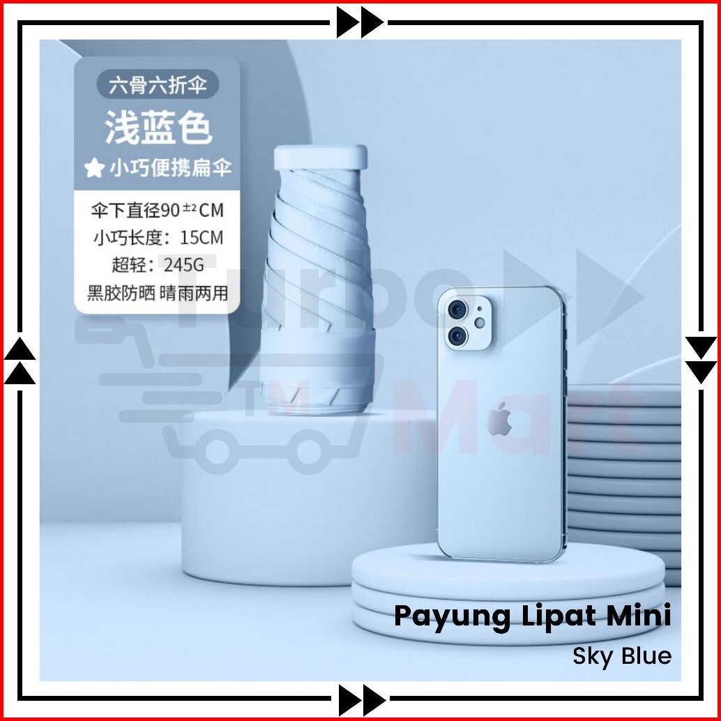 Payung Mini Anti Uv Gagang Warna - Mini Pocket Umbrella - Payung Lipat Mini Anti Uv