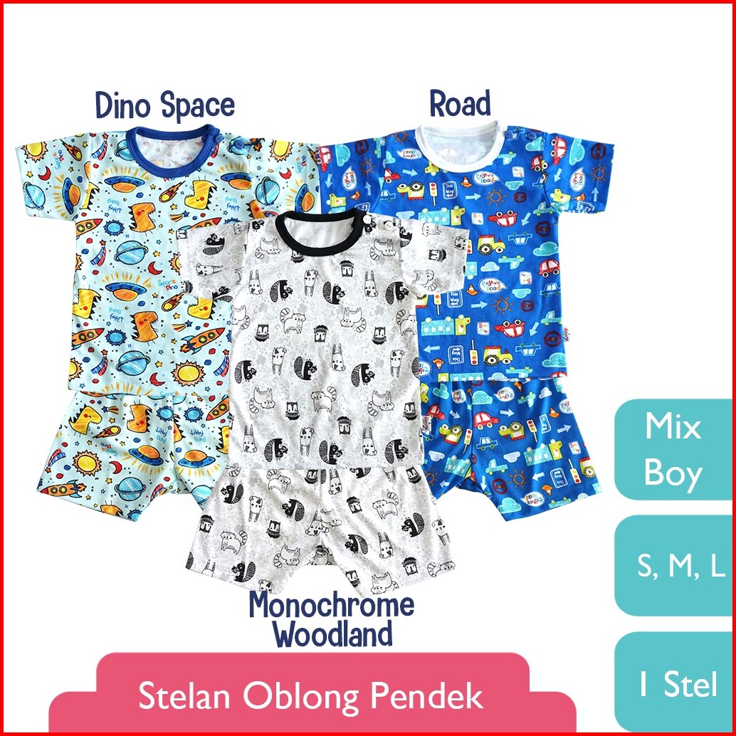 Libby 1 Stel Setelan Oblong Pendek Motif Mix Boy 1 Stel