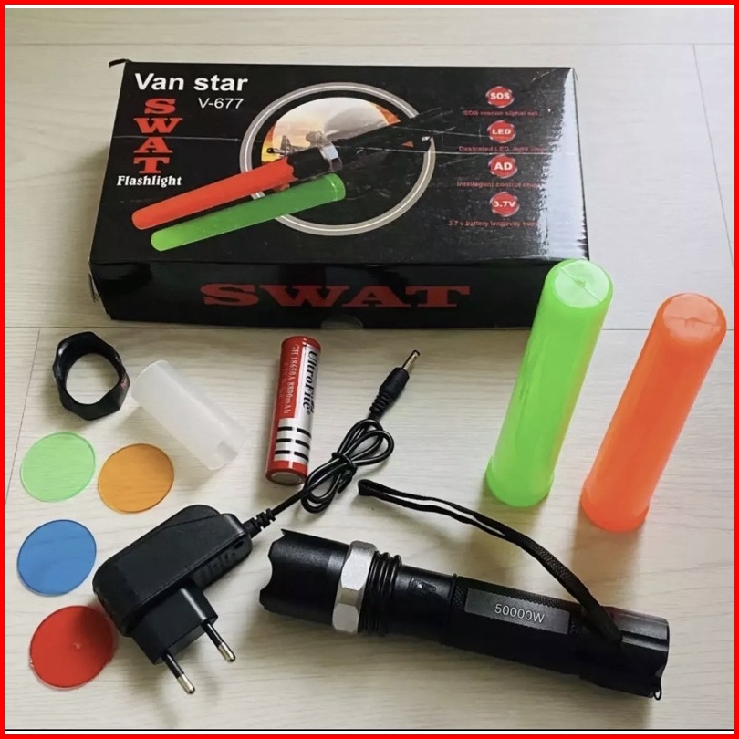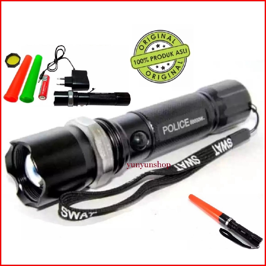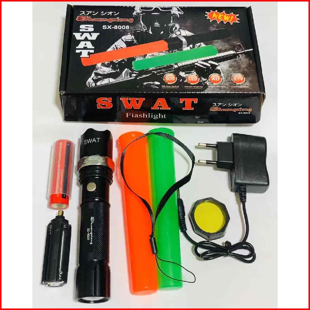 Senter Swat Police Led Flashlight 8008 Dengan Kompas Dan Zoom