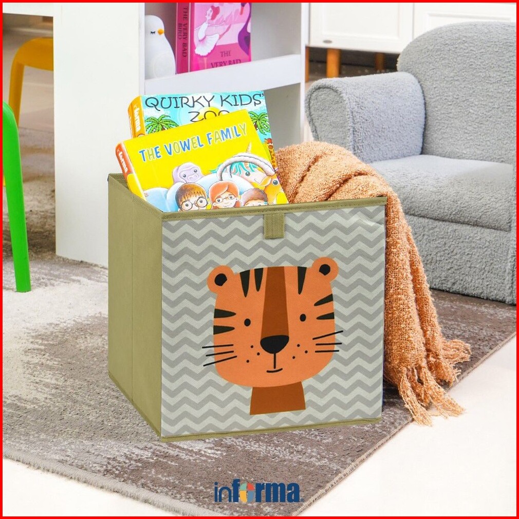 Informa 29x23x29 Cm Kotak Penyimpanan Lipat Motif Tiger - Cokelat Kotak Serbaguna Wadah Simpan Storage Box Boks Organize