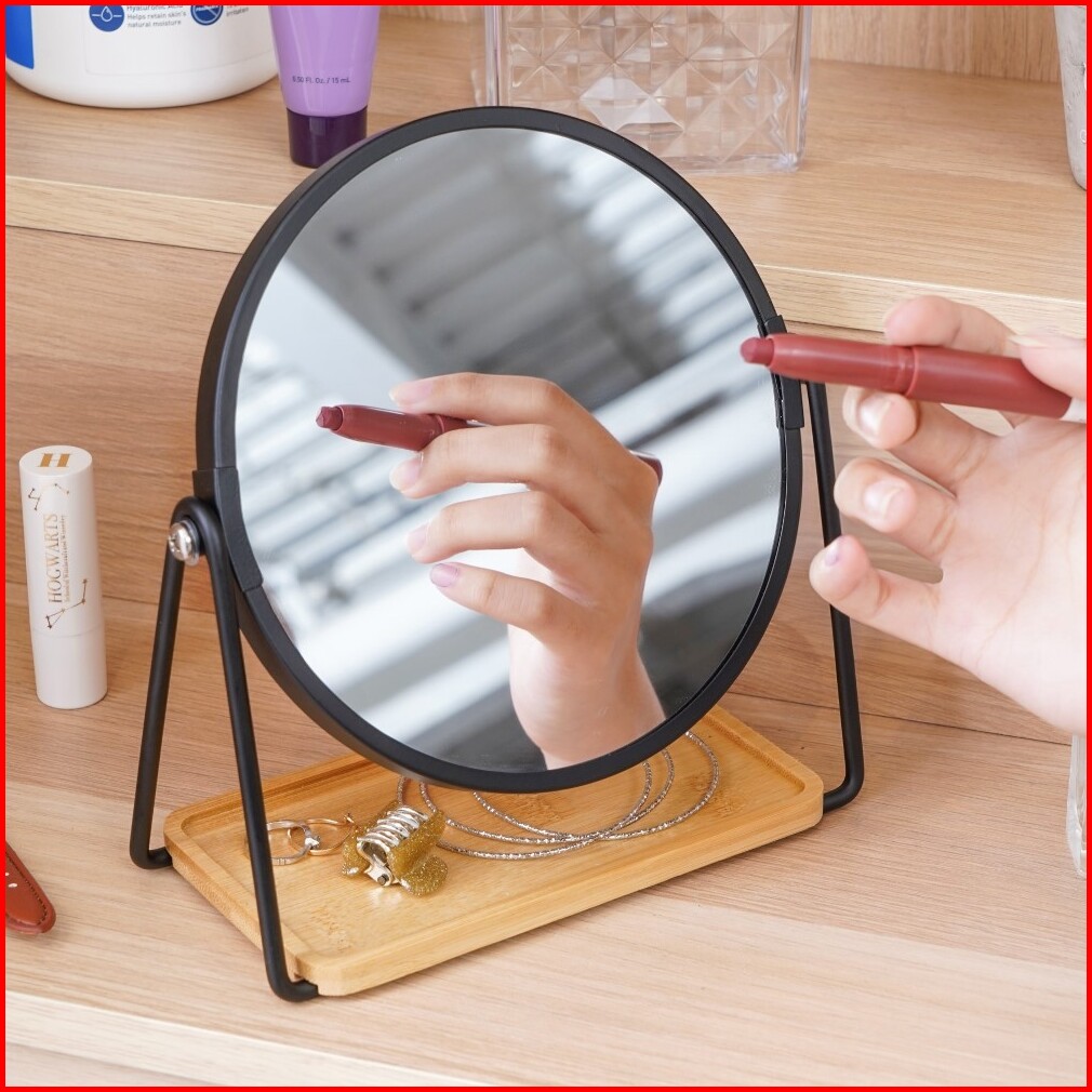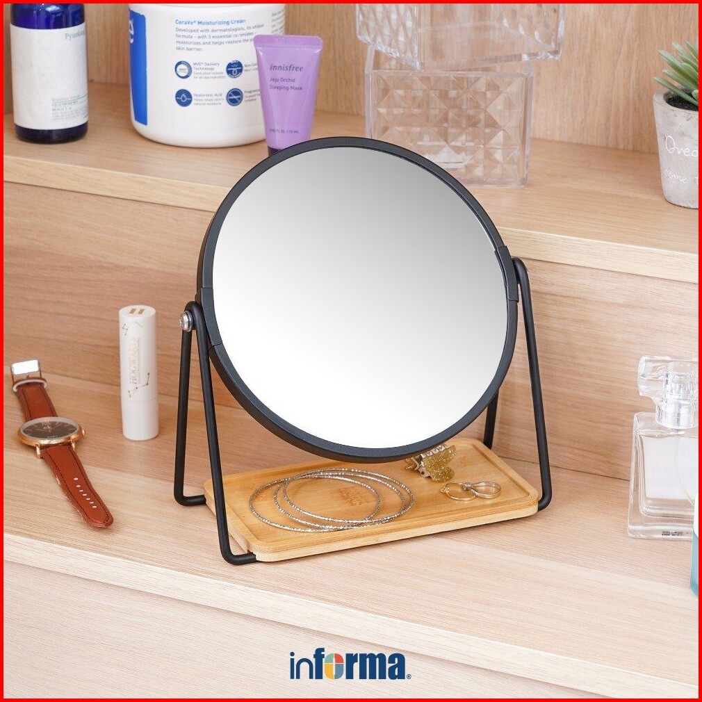 Informa Cermin Rias Meja Bulat Dengan Pembesaran 2x - Hitam Magnifying Mirror Kaca Zoom Makeup Kaca Rias Wajah Perlengka