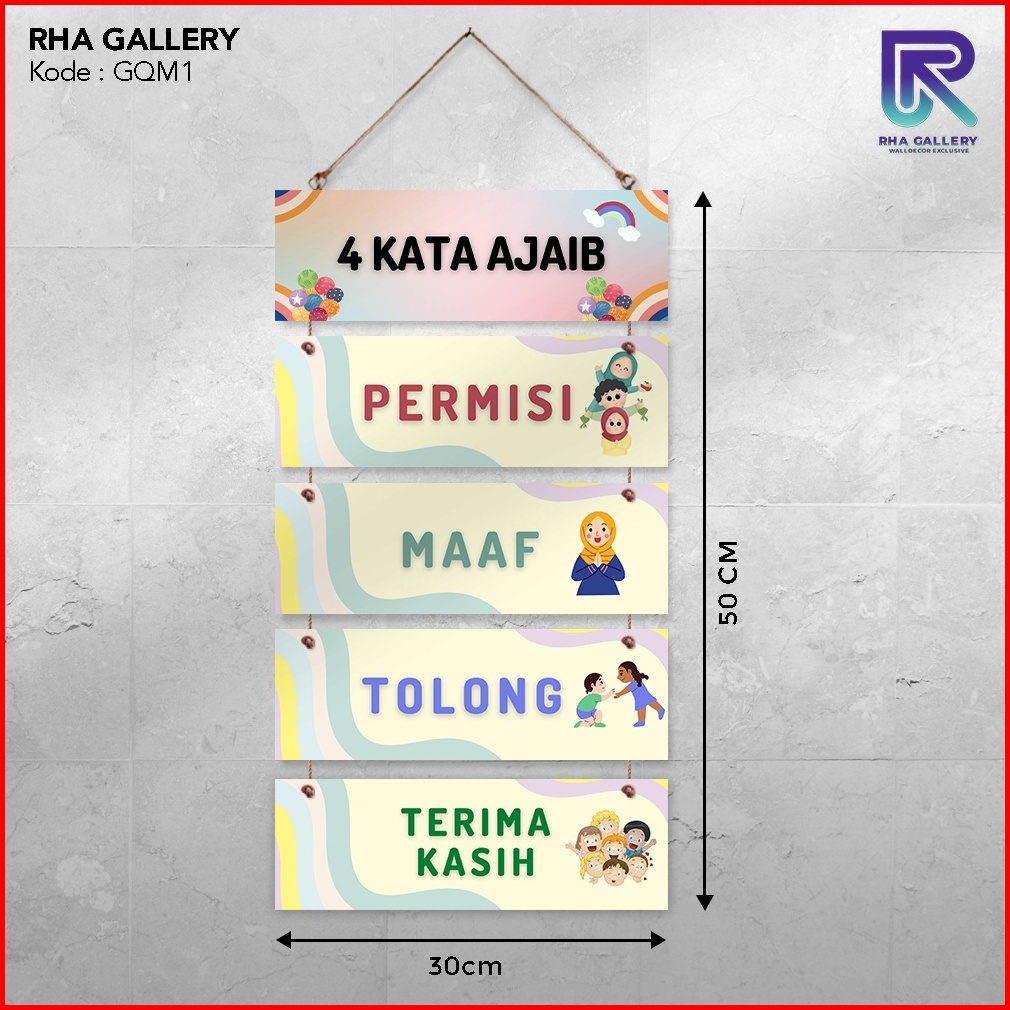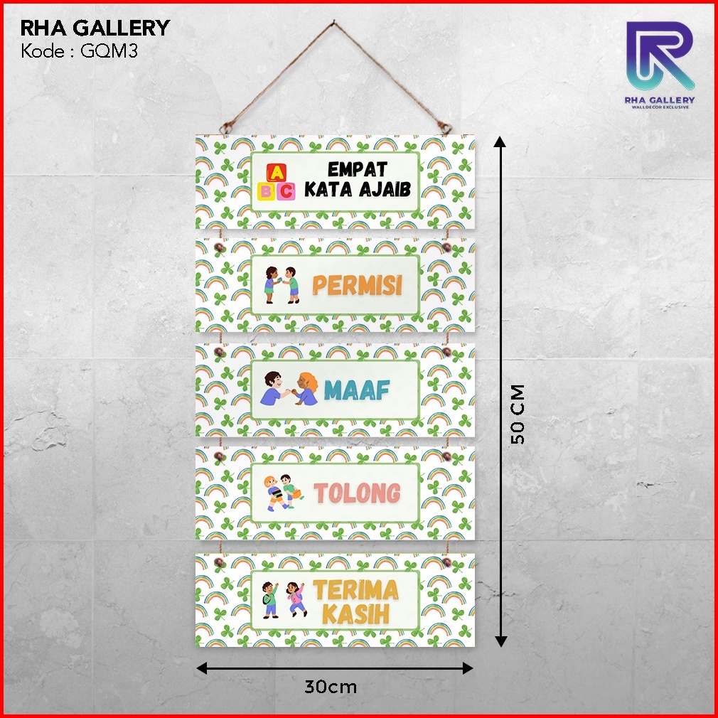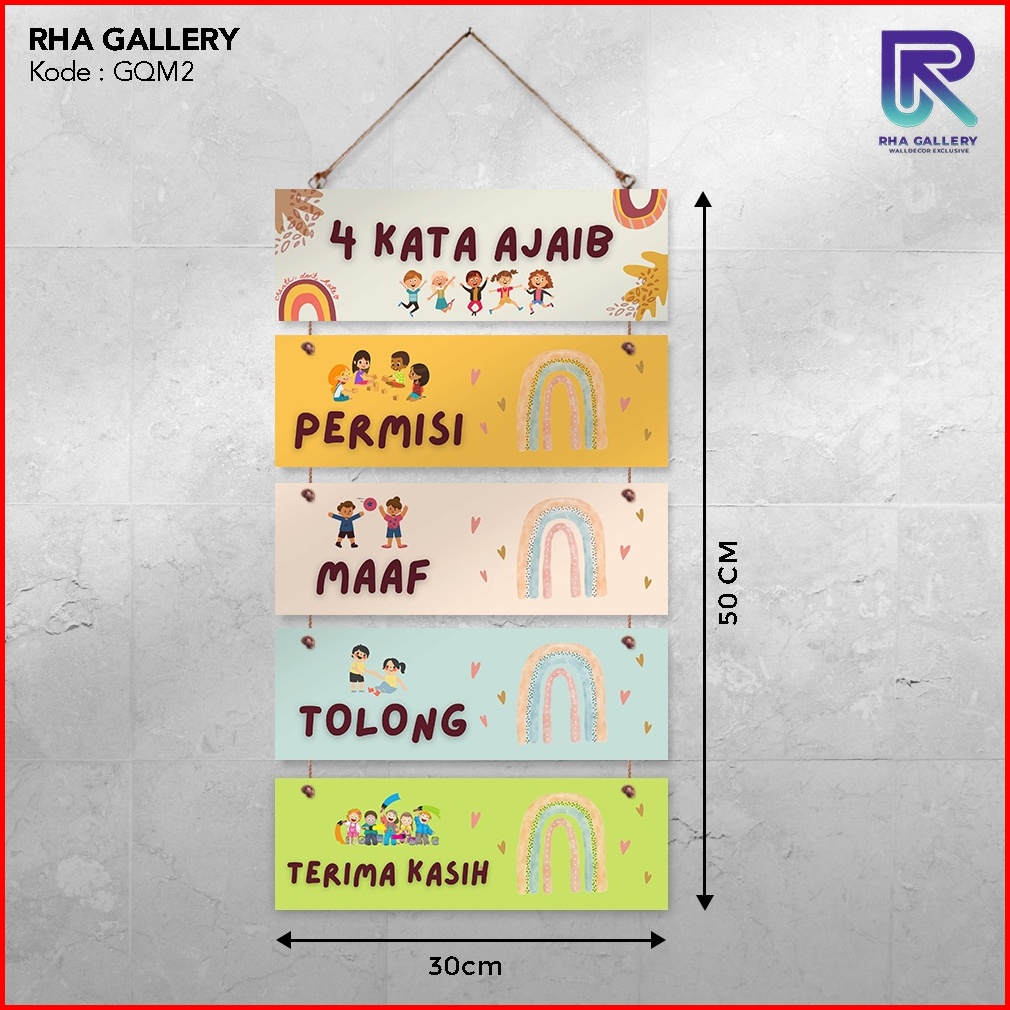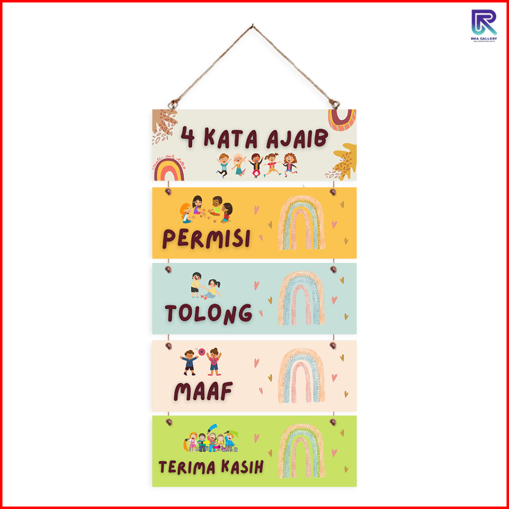 Rha Gallery Hiasan Dinding Gantung Set 4 Kata Ajaib Rainbow Pajangan Sekolah Kelas Anak Dekorasi
