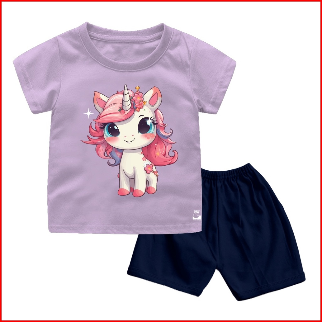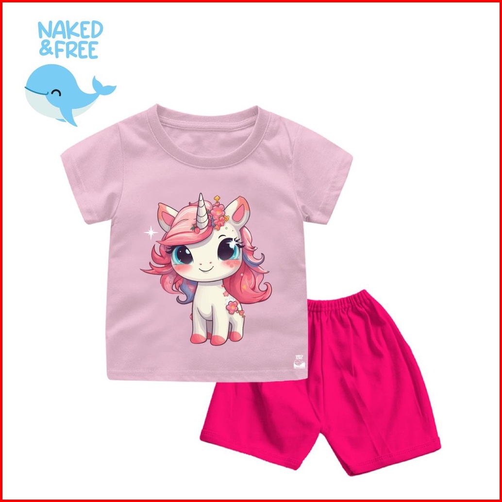 Naked Free Setelan Bayi Anak Seri Pink Unicorn Usia 6 Bulan - 8 Tahun Bahan Katun Combed 30s