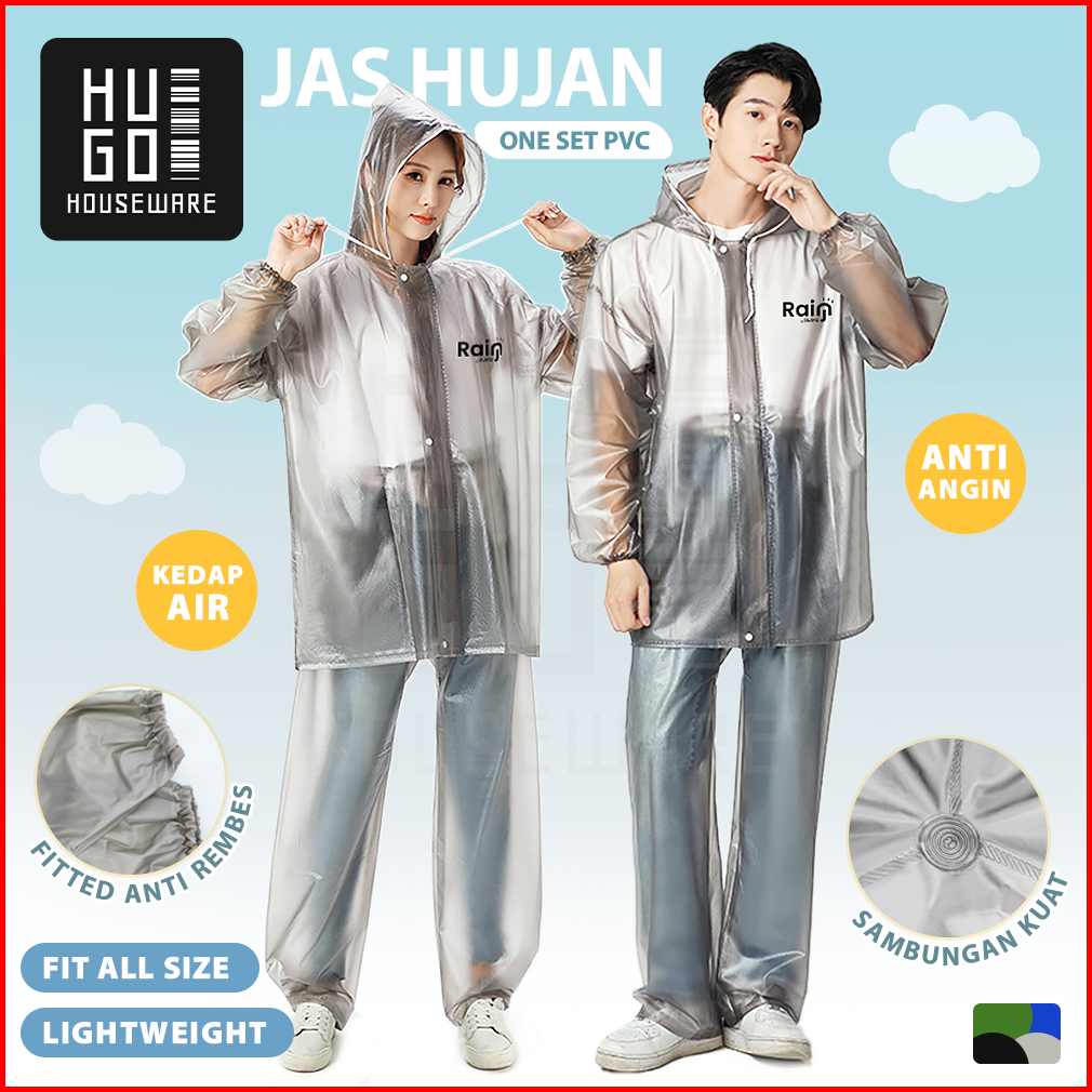 Hugo Jas Hujan Raincoat Pria Wanita Dewasa Terbaik Bahan Pvc Elastis Anti Rembes Best Quality