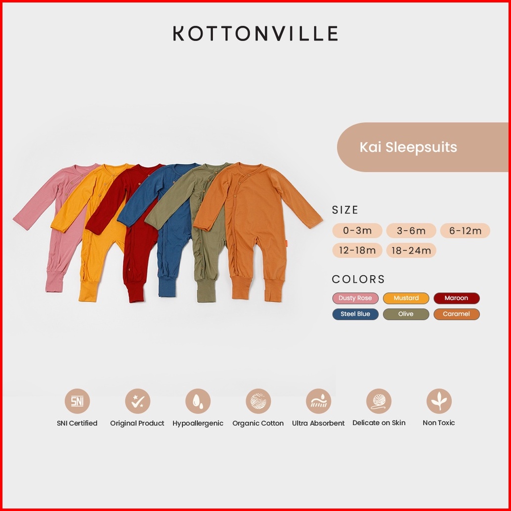 Kottonville - Setelan Baju Tidur Piyama Anak Bayi Essentials Kai Sleepsuits 0-2 Yrs Laki-laki Dan Perempuan