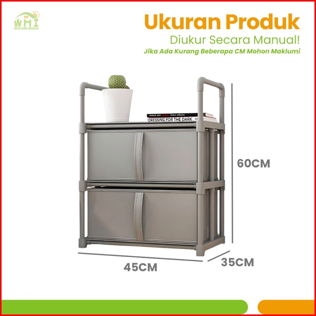 World Home Rak Penyimpanan Storage Rack Laci 3 Susun 2 Laci Kain Linen Mono Double Modern Minimalis