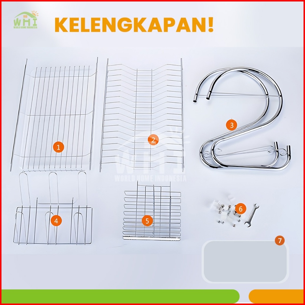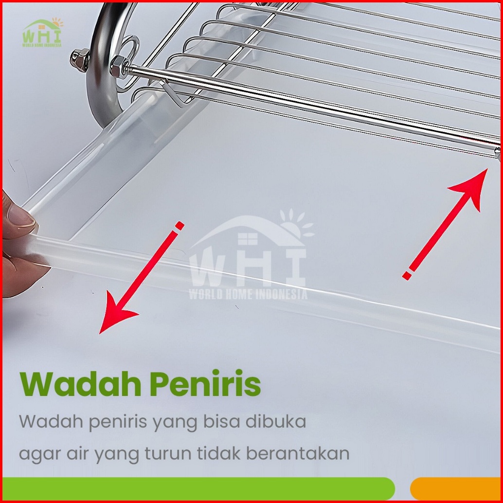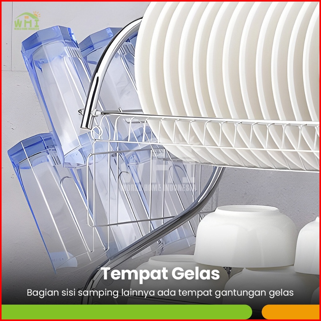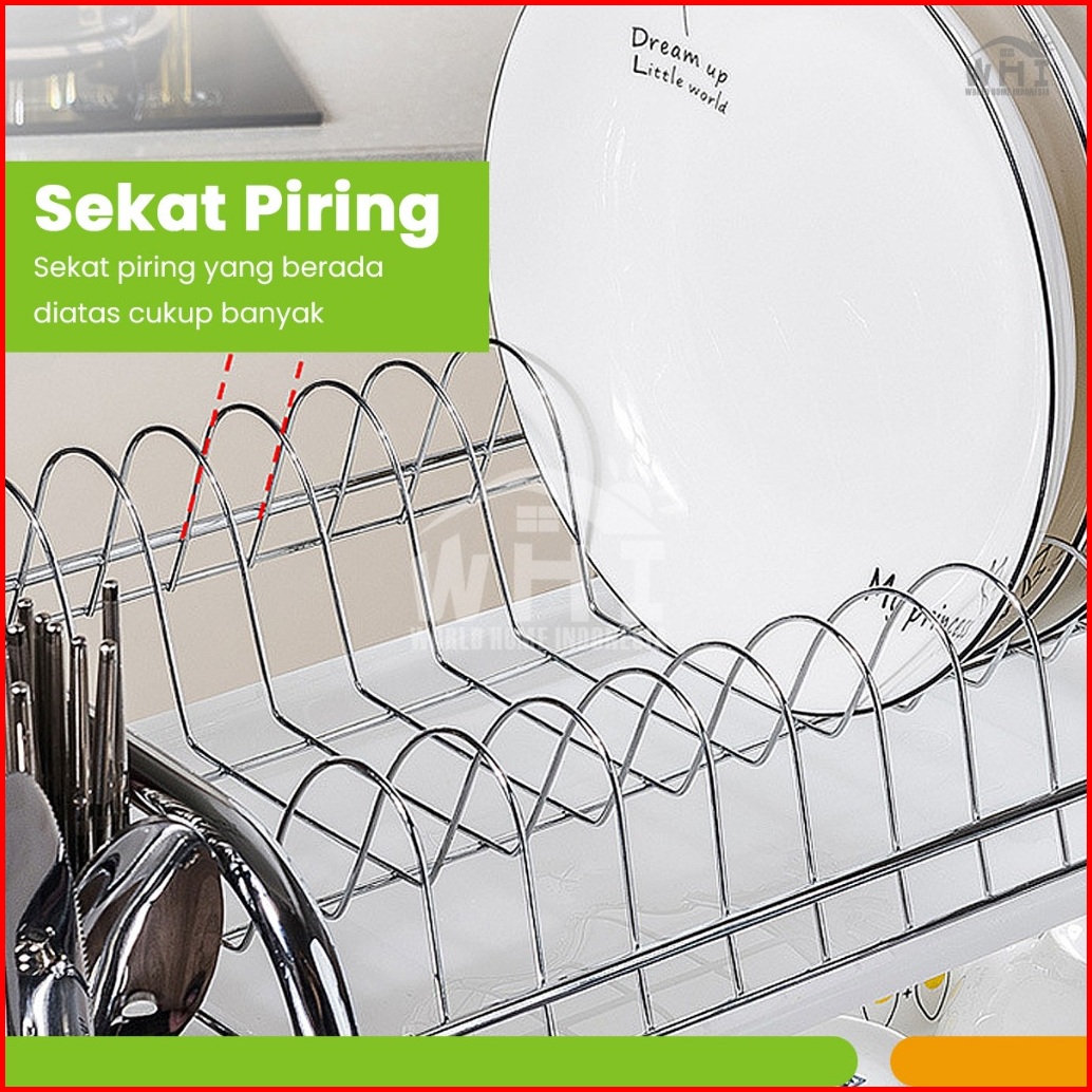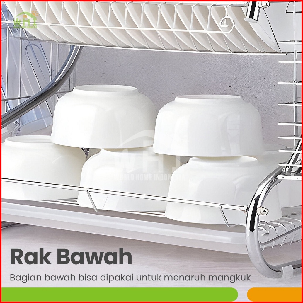 World Home Rak Piring Stainlees 2 Tingkat Rak Piring Minimalis Rak Dapur Stainless Steel Dish Rack
