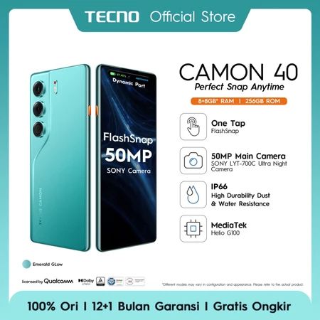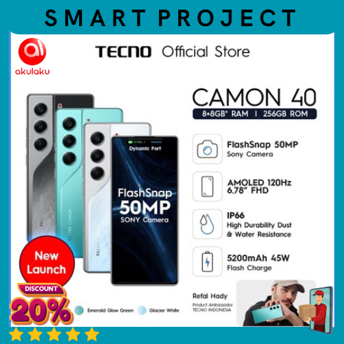 [FLASH SALE] TECNO CAMON 40 8+8GB*256 GB, 50MP Sony + 8MP Ultra Wide Camera, 32MP Front Camera, 120hz AMOLED, IP66