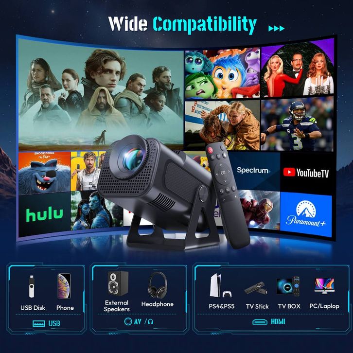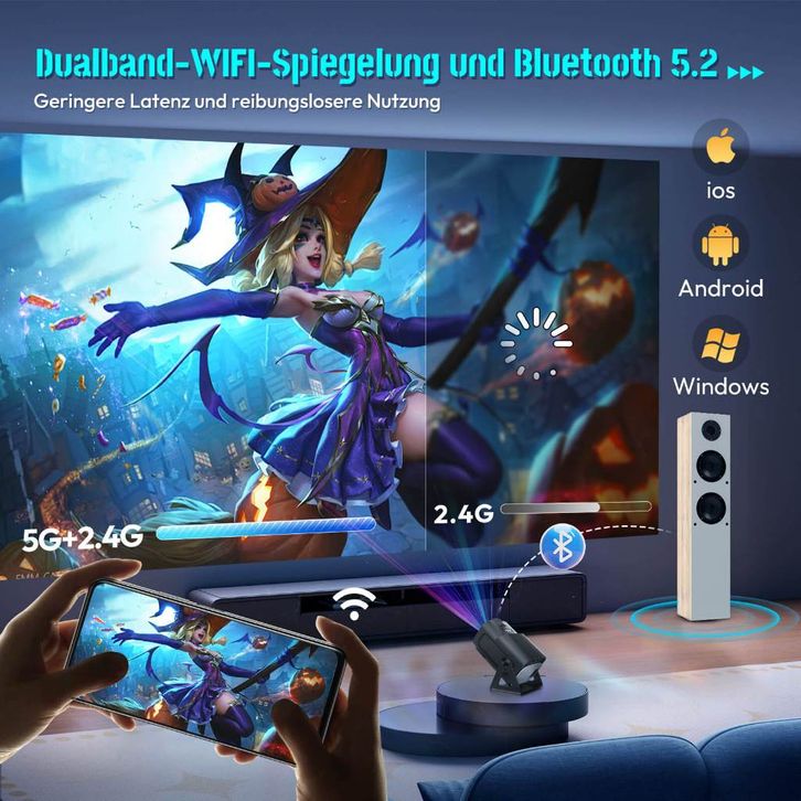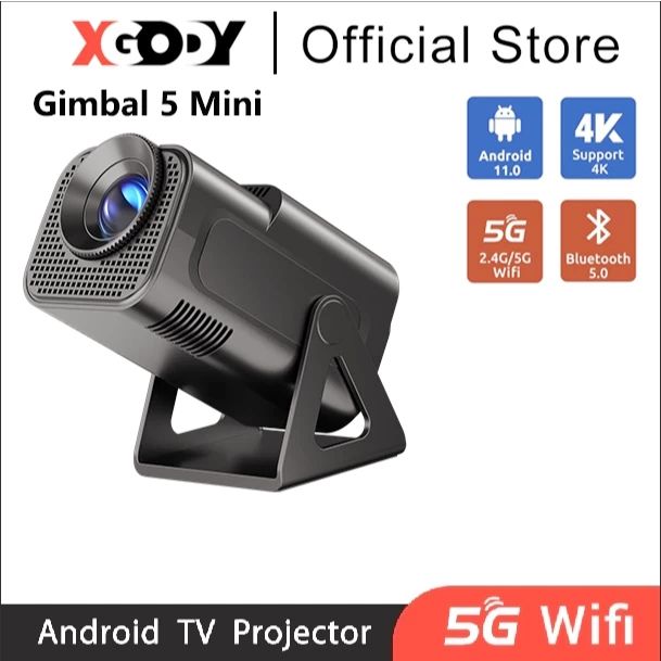 XGODY Gimbal5 Min Smart Proyektor 720P Android 11.0 WiFi6.0 260 Ansi Lumens PROYRKTOR TERANYAR TANPA DP TERBARU