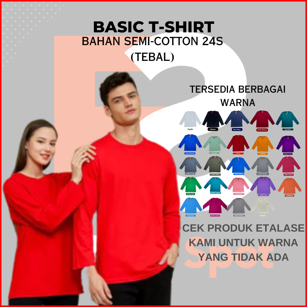 Langsung Dari Pabrik Kaos Polos Lengan Panjang Semi-cotton 24s Premium Reguler Fit Dewasa