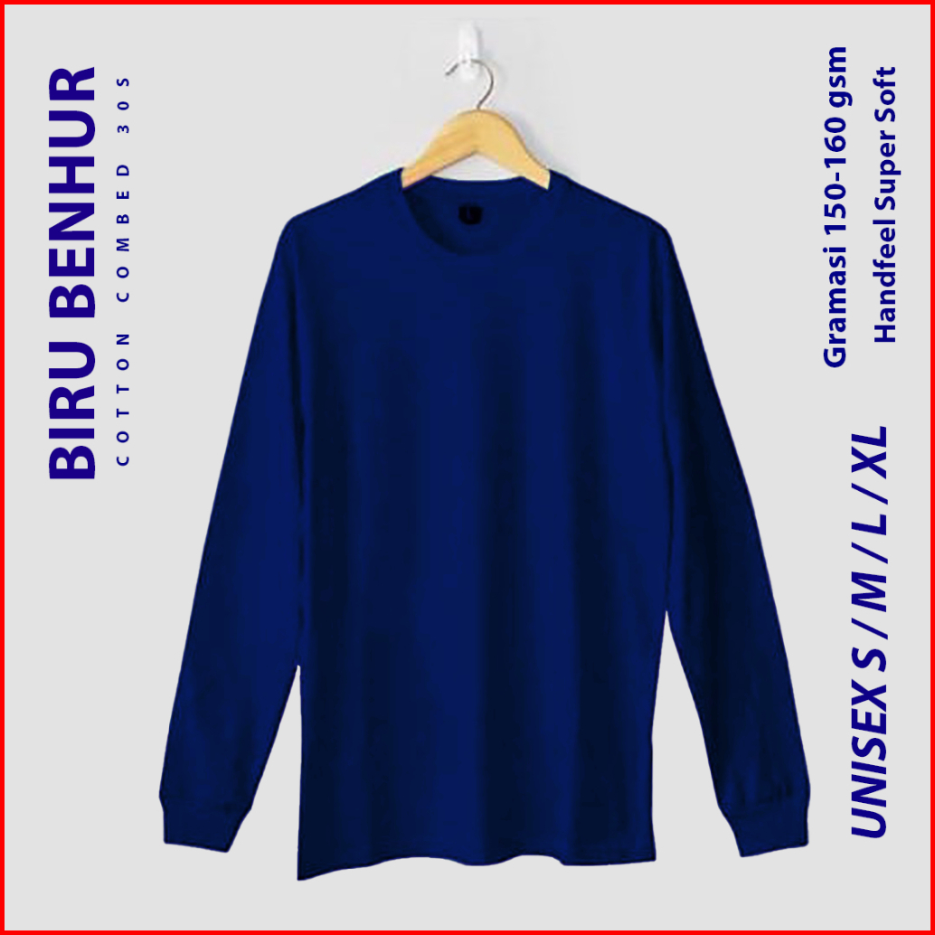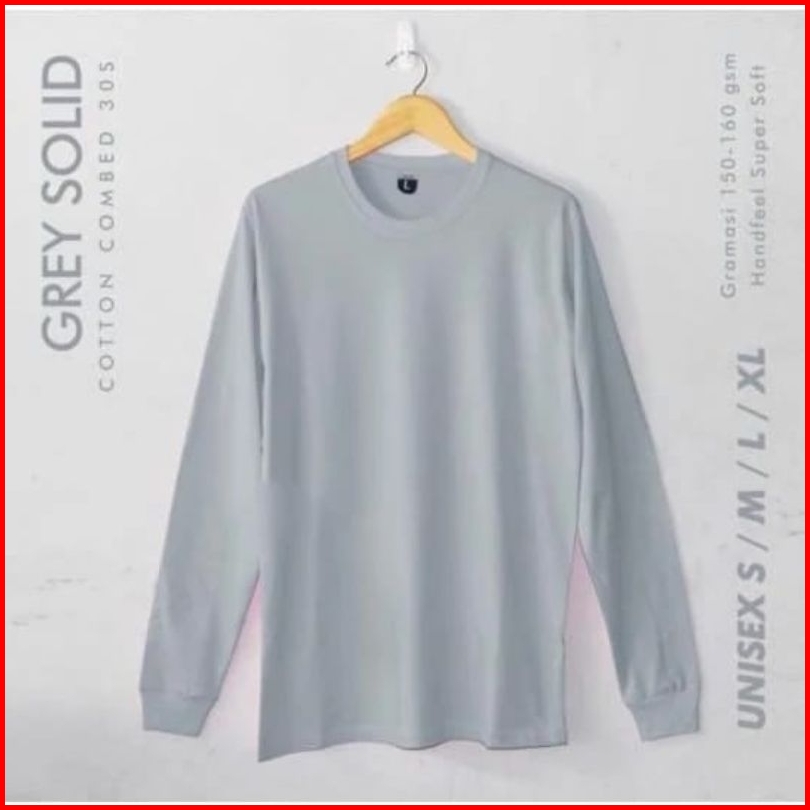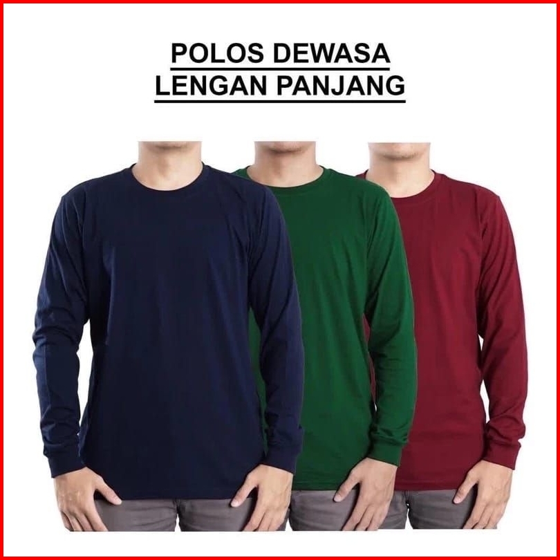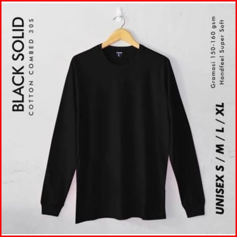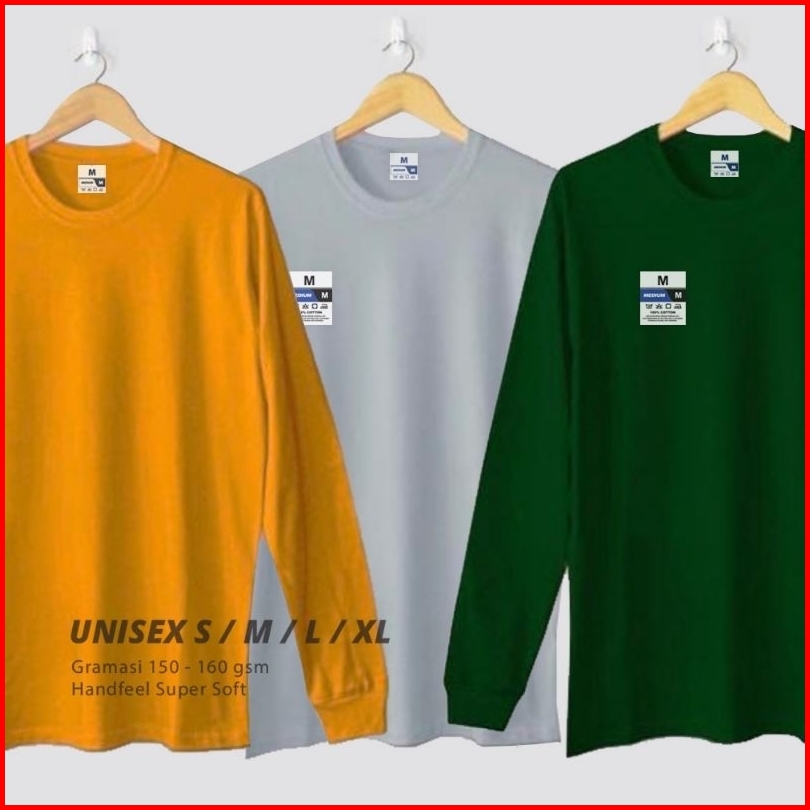 Kaos Polos Lengan Panjang Pria Wanita Ujung Lengan Rib Cotton Combed 30s Adem Dapat Menyerap Keringat