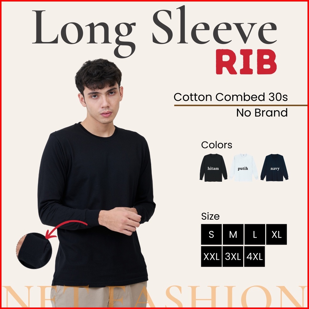 Kaos Polos Lengan Panjang Rib Tangan Karet Unisex Cotton Combed 30s Sweatshirt Reguler Fit