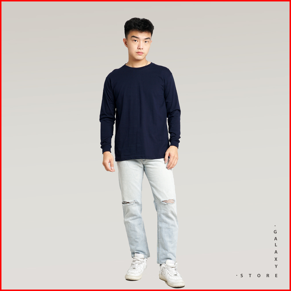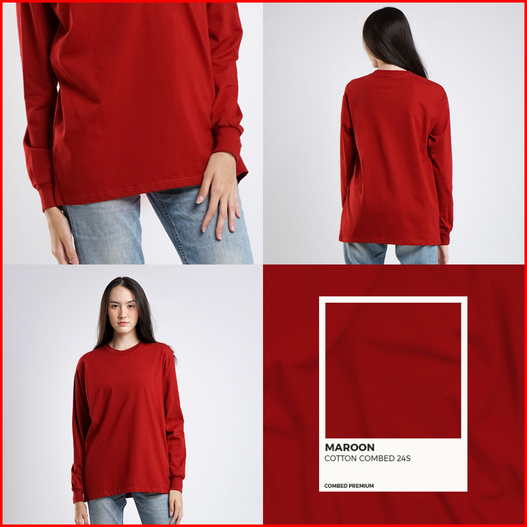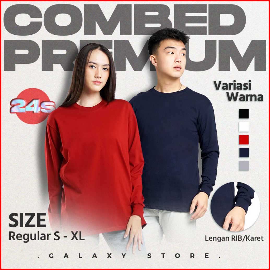 Kaos Polos Lengan Panjang Rib Karet Ukuran S - 3xl Cotton Combed 24s Premium