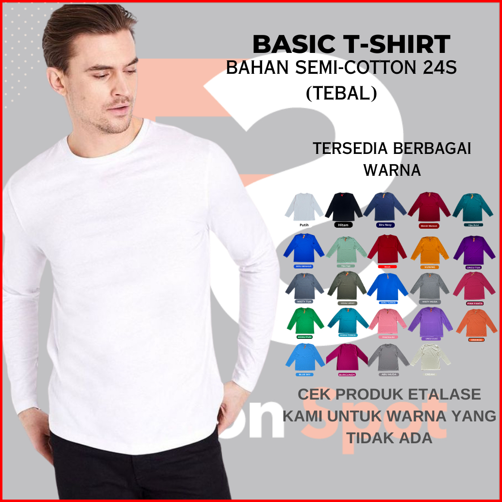 Langsung Dari Pabrik Kaos Polos Lengan Panjang Dewasa Semi-cotton 24s Tebal Premium Reguler Fit
