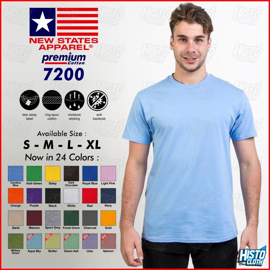 Kaos Polos Baju Nsa Premium Cotton Part 2 New States Apparel 7200 Short Sleeve Lengan Pendek Ori