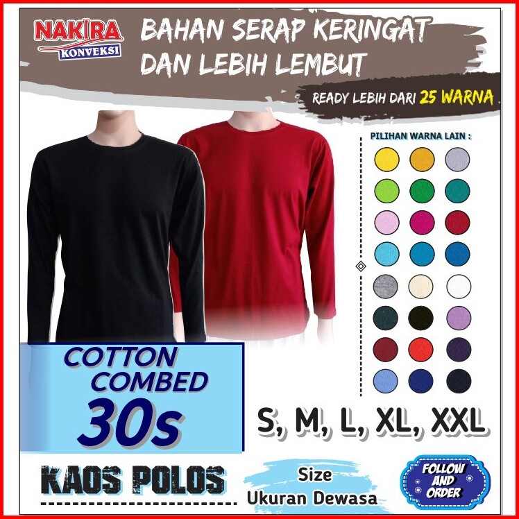 Kaos Polos Lengan Panjang 30s Oblong Distro Cotton Combed 30s Long Sleeve Katun Premium