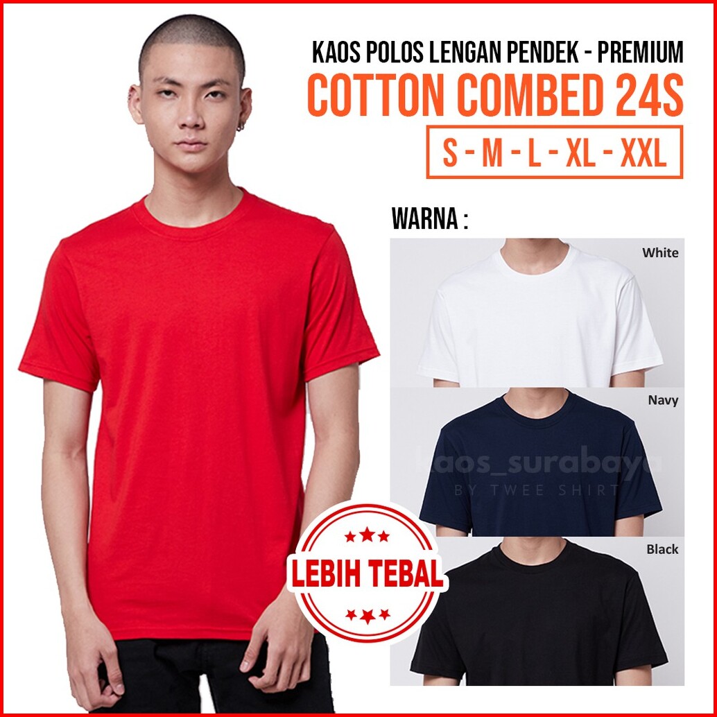 Lebih Tebal Kaos Polos Lengan Pendek Cotton Combed 24s Yarn Spindle Eco Soft Premium