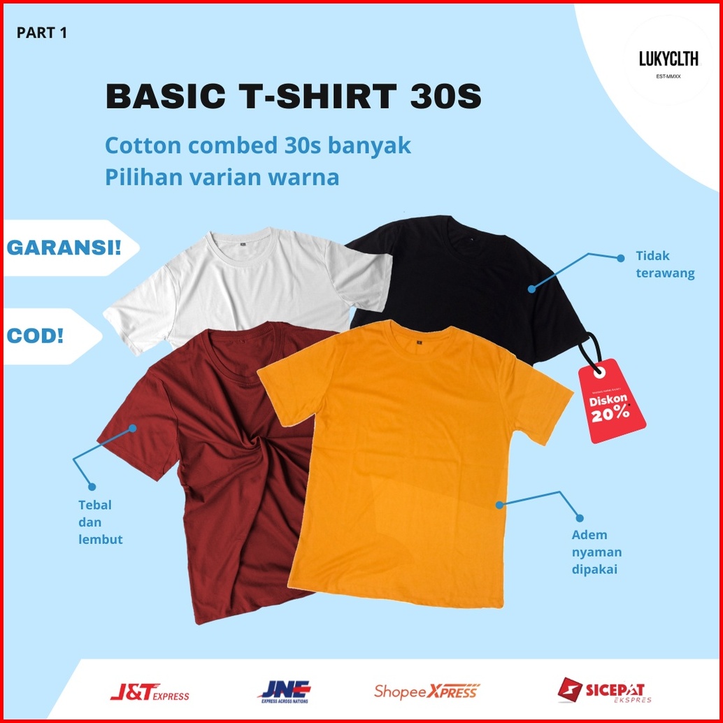 Kaos Polos Cotton Combed 30s Pria Wanita Distro Baju Basic T Shirt Murah