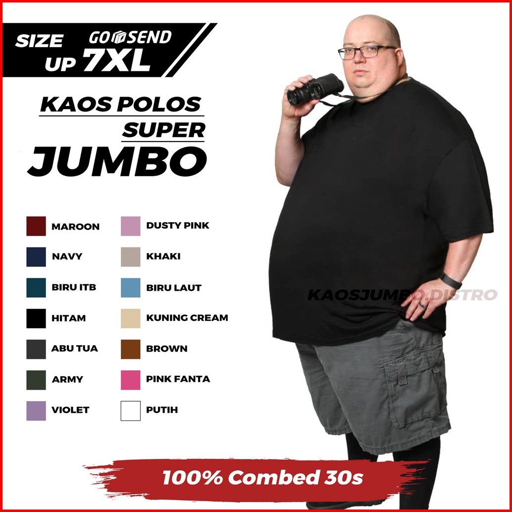 Kaos Polos Pria Super Jumbo Ukuran 5xl 6xl 7xl Big Size Dewasa Super Besar Combed 30s