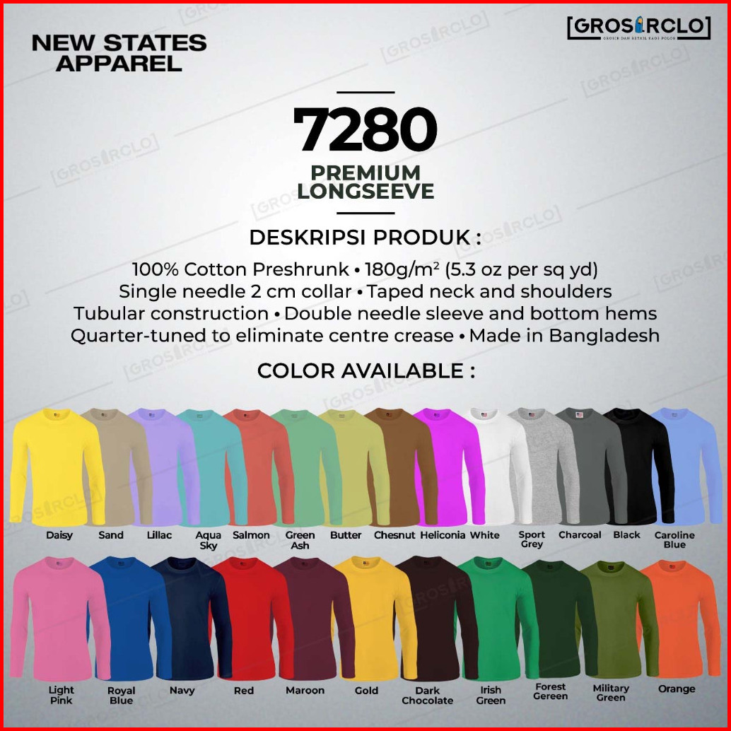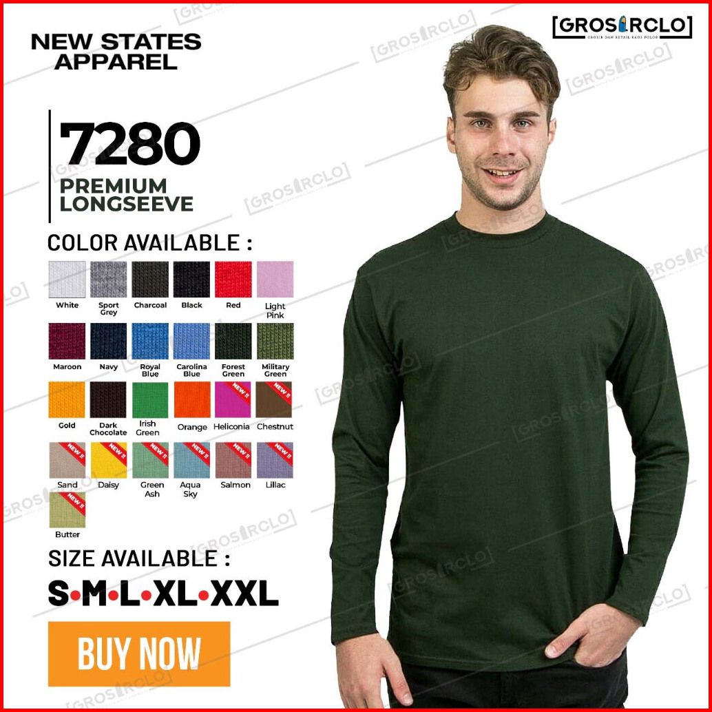Kaos Oblong Polos Lengan Panjang Pria New States Apparel Nsa 7280 Lengan Panjang Premium Cotton Original Murah