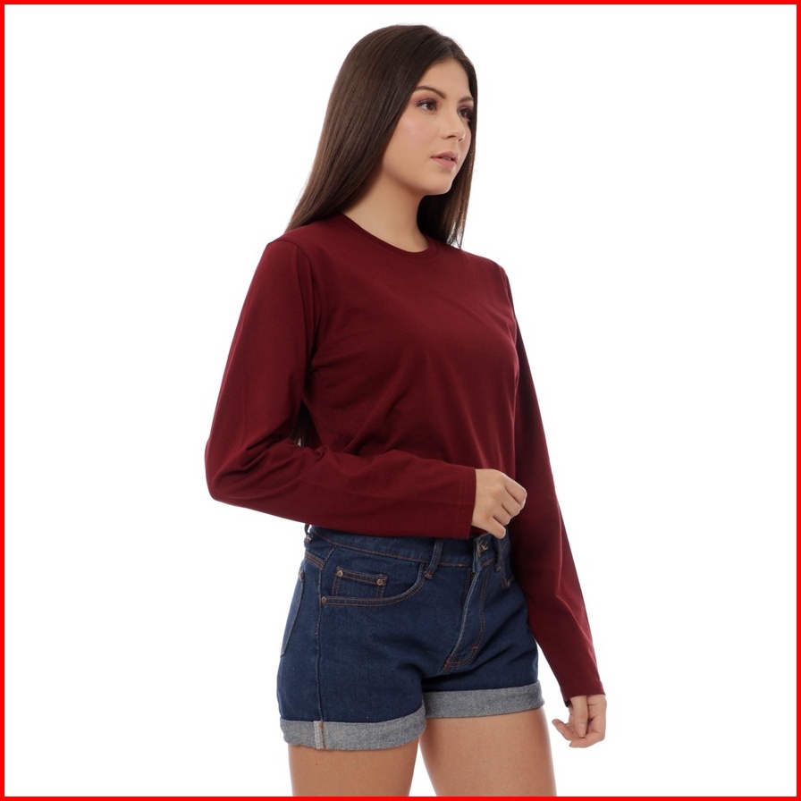 Kaos Polos Wanita Lengan Panjang S - Xl Premium Soft Cotton Combed 30s