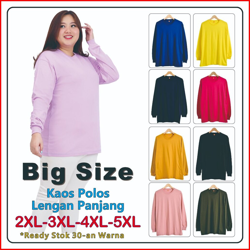 Baju Kaos Polos Lengan Panjang Xxl Xxxl 4xl 5xl Cotton Combed 30s Big Size