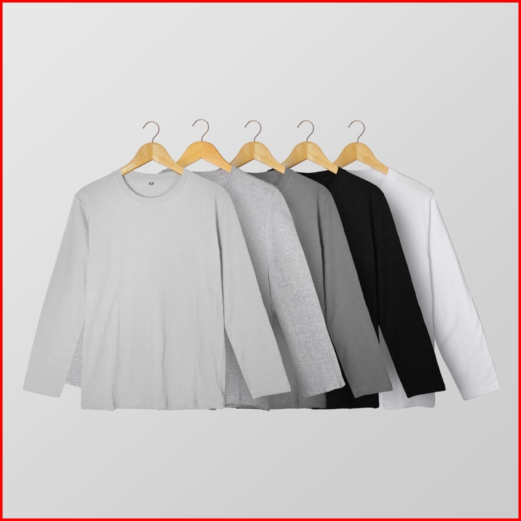 Kaos Polos Lengan Panjang Cotton Combed 30s Premium Reguler Fit Pria Wanita Unisex Abu Muda - Abu Misty - Abu Tua - Hita