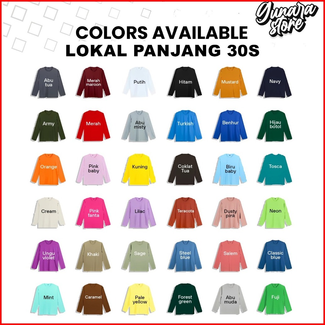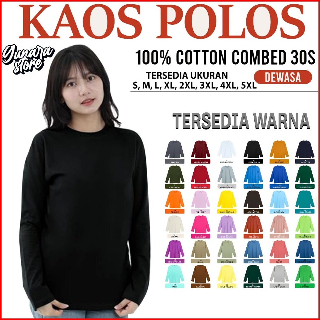 Gunara Kaos Polos Pria Wanita 100 Cotton Combed 30s Lengan Panjang