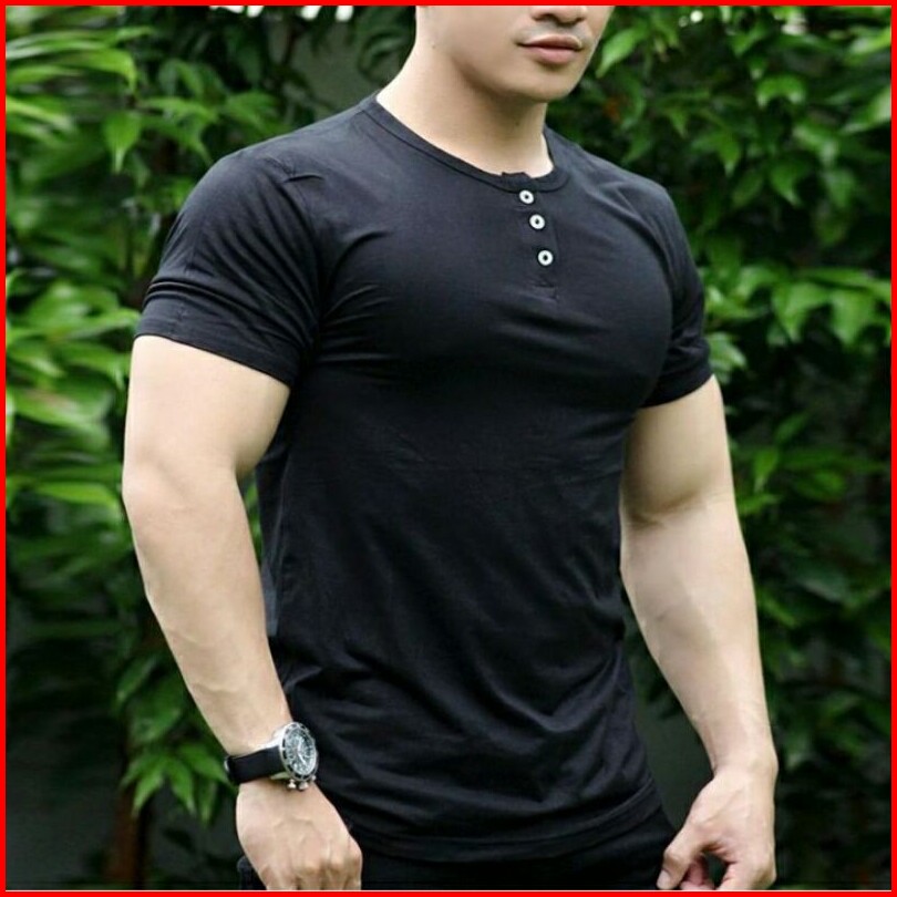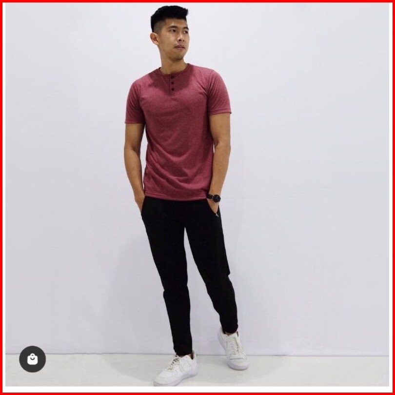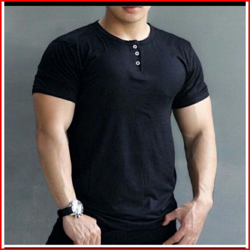 Kaos Polos Pria Henley Polos Kancing 3 Lengan Pendek