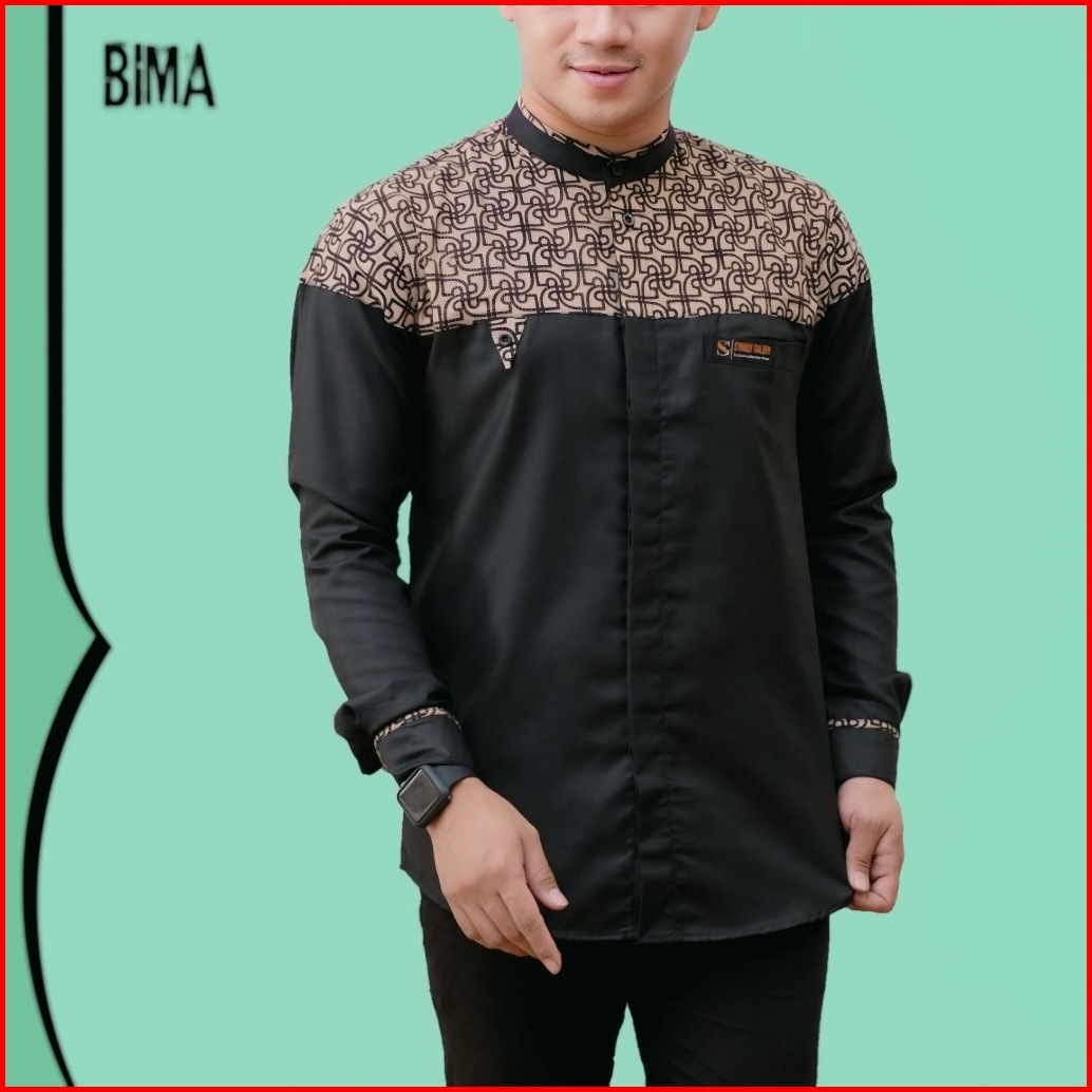 Baju Koko Pria Lengan Panjang Motif Bima Kombinasi Batik Terbaru M L Xl Xxl