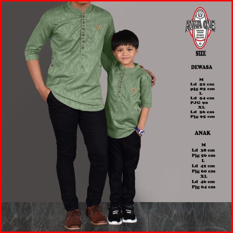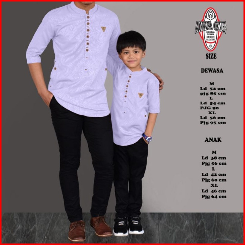 Baju Koko Kurta Couple Ayah Anak Motif Emboss Original Anwa One