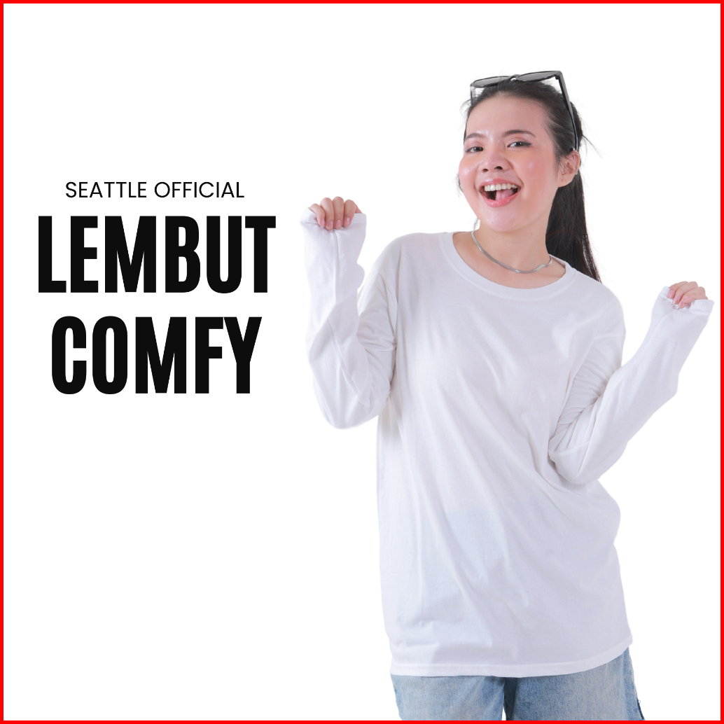 Seattle Kaos Polos Lengan Panjang Long Sleeve Premium Soft Cotton 30s Putih
