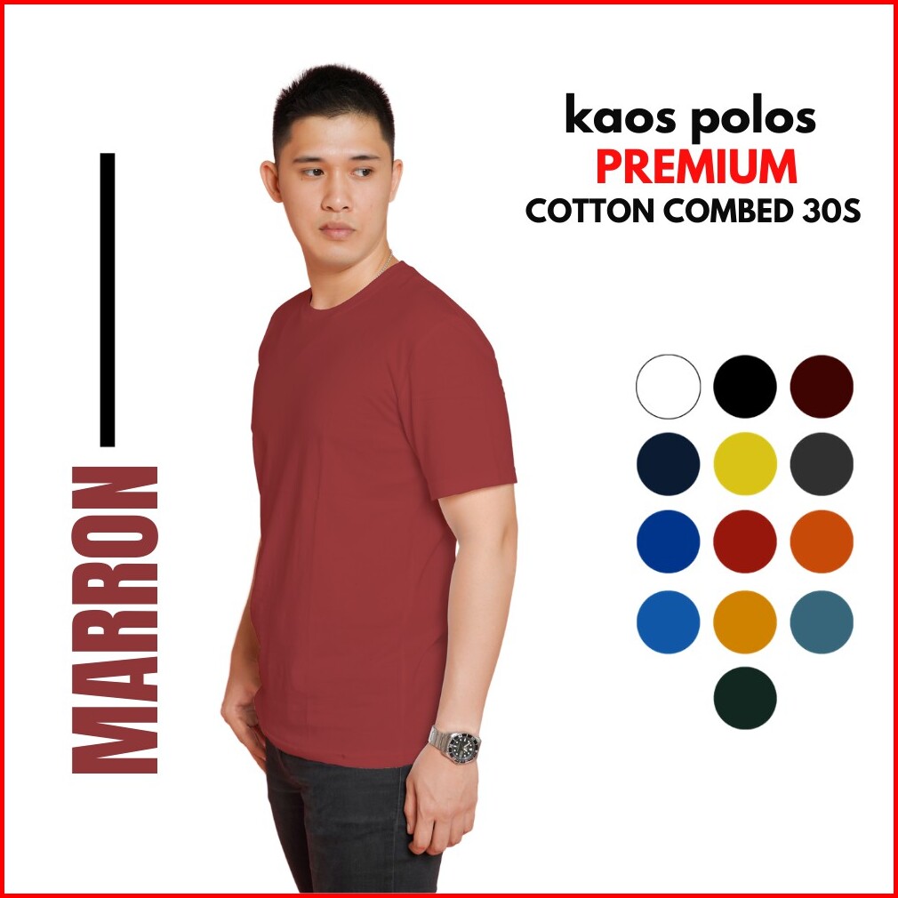 Kaos Polos Cotton Combed 30s Premium Warna Maroon