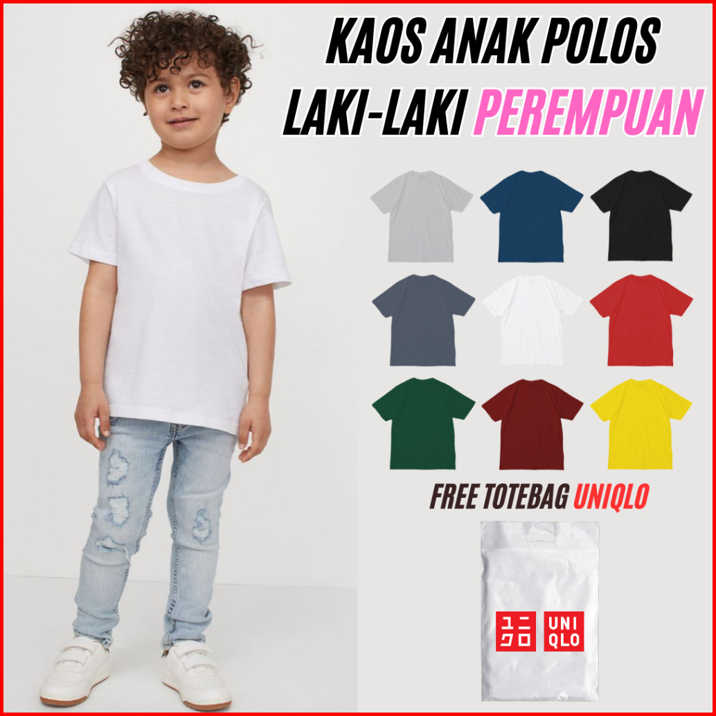 Kaos Uniqlo Anak Polos 1-12 Tahun Anak Laki Laki Perempuan Lengan Pendek Unisex