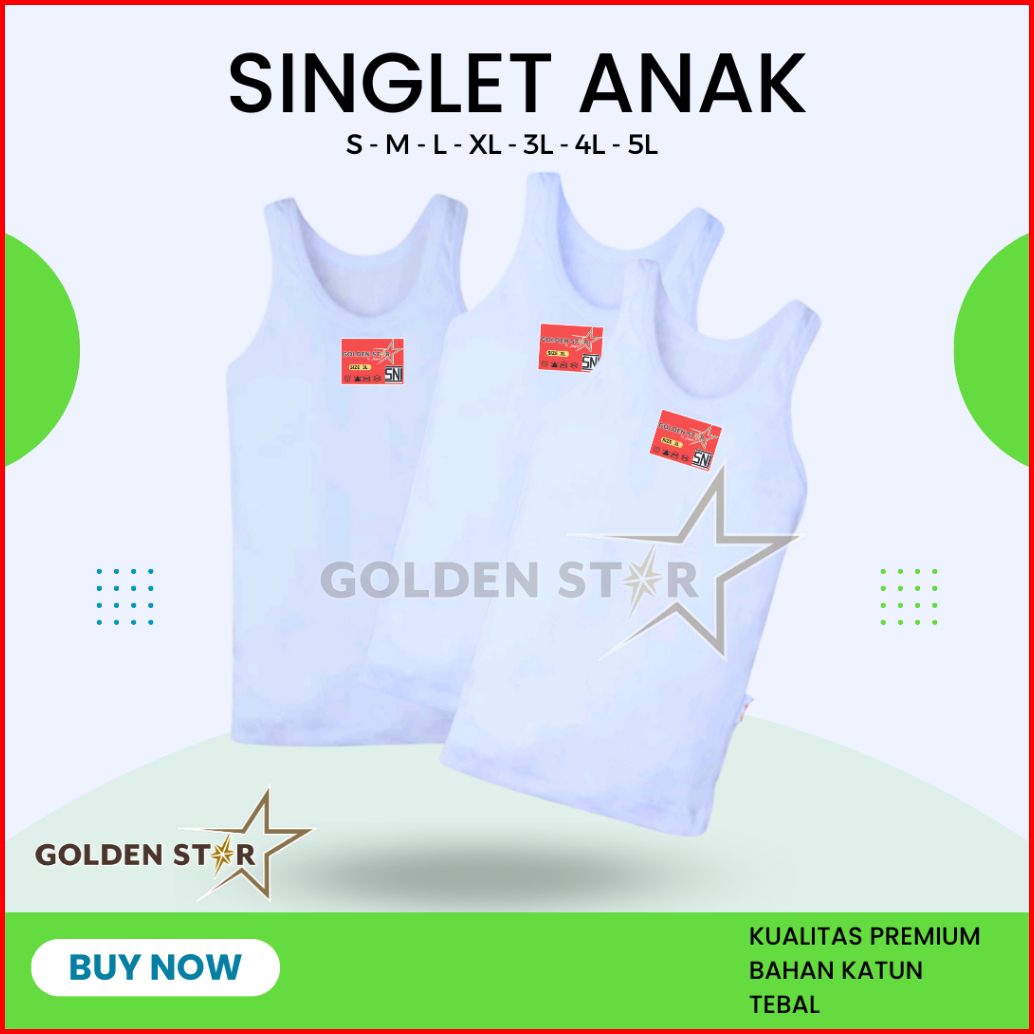 Kaos Dalam Singlet Anak Golden Star Unisex Best Seller Singlet Anak Kaos Dalam Anak Putih Singlet Anak Putih Premium