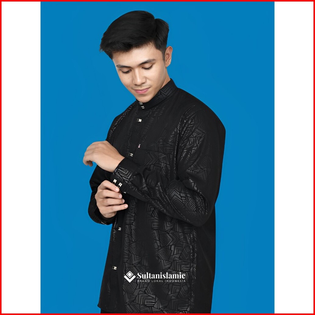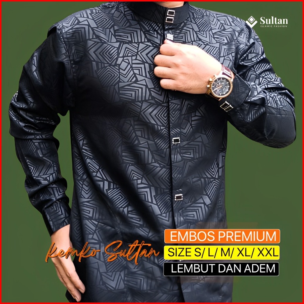 Pakaian Terbaru Baju Muslim Kemeja Koko Kemko Pria Sultan Kasual Dewasa Hitam Lengan Ootd Panjang Kurta Embos Motif Timb