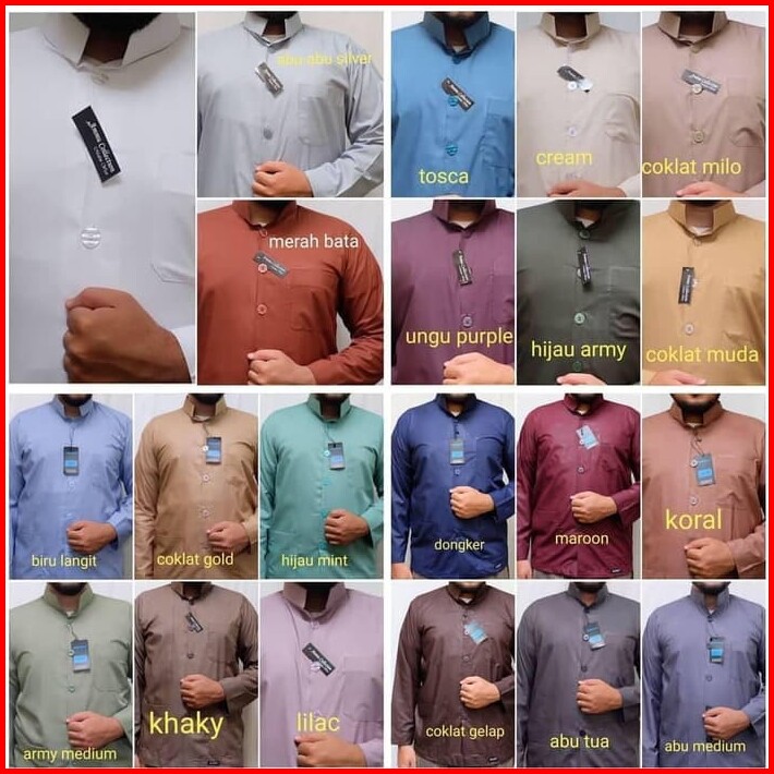 Tosca Tua, Ungu Lilac, Biru langit muda, Hijau botol, Abu abu, Cokelat Tua, Hijau mint, Abu abu tua, Biru Dongker, Oren tua, Hijau daun/olive, Tosca, Hijau army, Hijau mint terang, Kuning kunyit, Pink Salem, Biru Turkish, Hitam, Kuning lemon, Coksu, Cokelat khaky, Tosca muda, Biru BCA, Merah maroon, Hijau stabilo