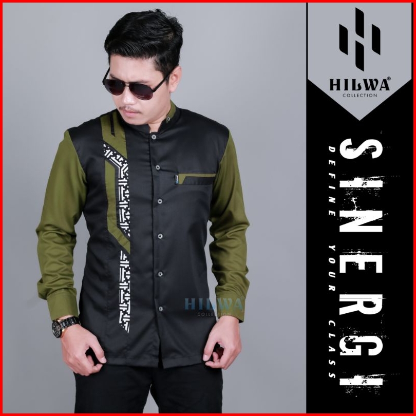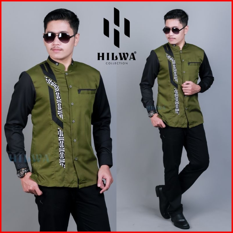 Baju Koko Hilwa F- Collection Butik. Baju Koko Muslim Dewasa Kombinasi Batik Fashion Pria Spesial Batik Lengan Panjang B
