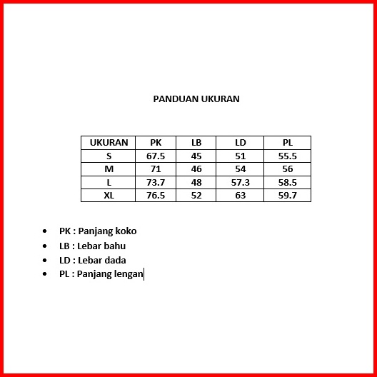 Kuning lemon, Cream, Hijau daun, Abu kecoklatan, Putih tulang / BW, abu tua, Tosca muda, Pink Salem / peach, Tosca, hitam, Cokelat tua/gelap, hijau army, Tosca Tua, Hijau botol tua, Coklat Milo, Hijau mint, Biru Elektrik/BCA, Abu abu, Merah tua, biru dongker, Biru Turkish, Kuning kunyit, Cokelat khaky, Ungu muda, Putih, Oren Tua, Hijau mint terang, Dark pink, Hijau stabilo, White putih, Merah bata, Pink fanta, Hijau sampurna, Biru langit muda, Coksu muda, Hijau botol muda, Celana pangsi merah, Merah maroon, Ungu tua