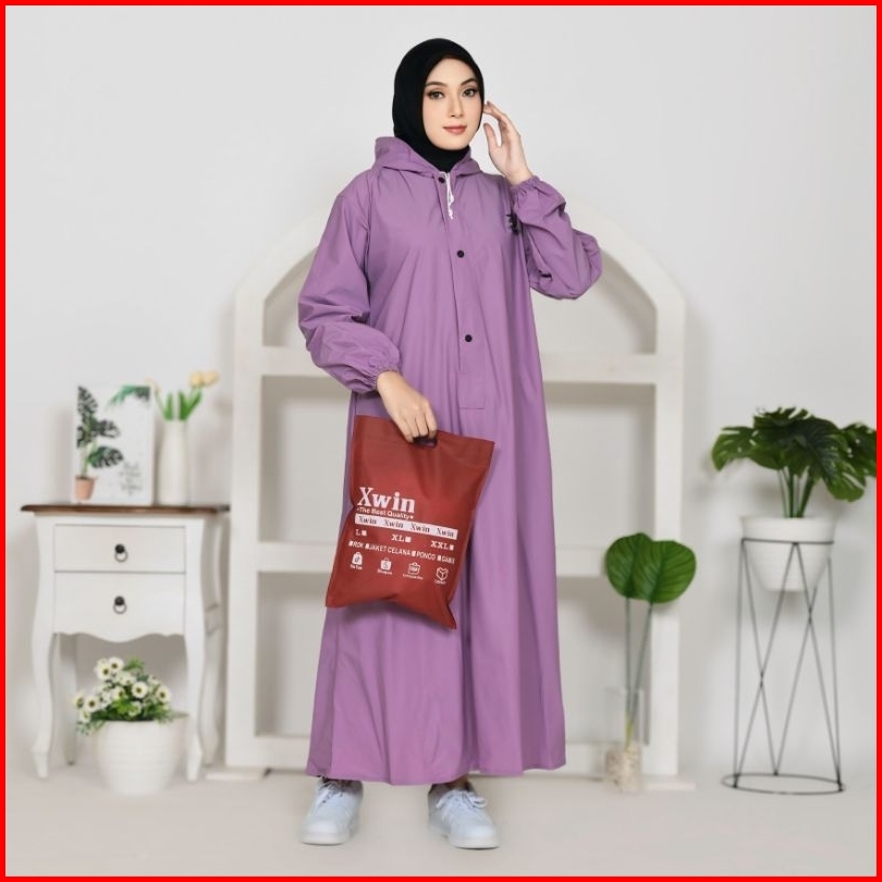 Xwin Raincoat Wanita Jas Hujan Gamis Syar I Berbahan Pvc Tebal Kuat Lentur Anti Rembes Waterproof Tahan Air Dan Kedap Ai
