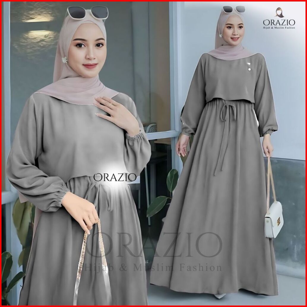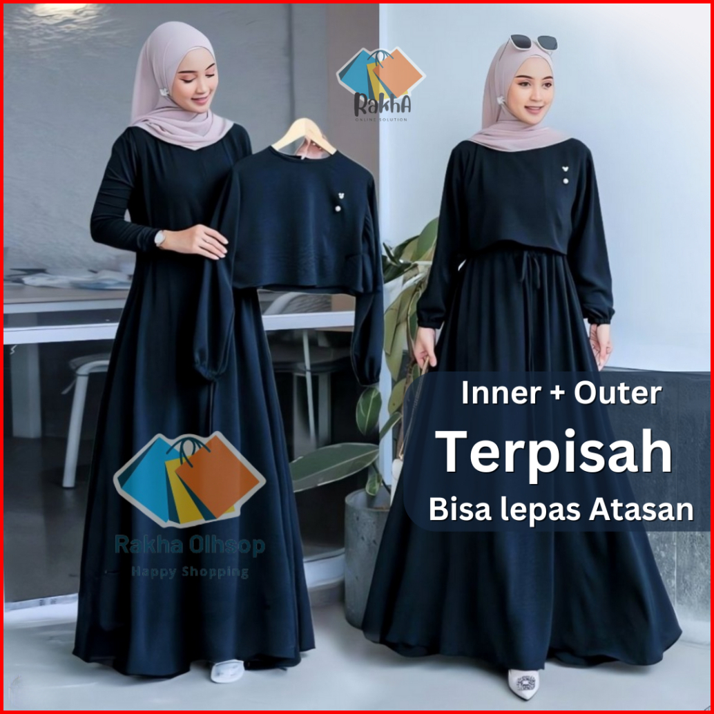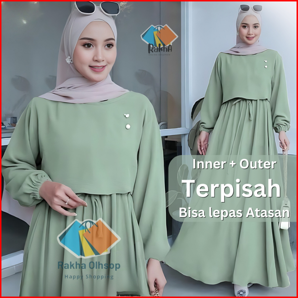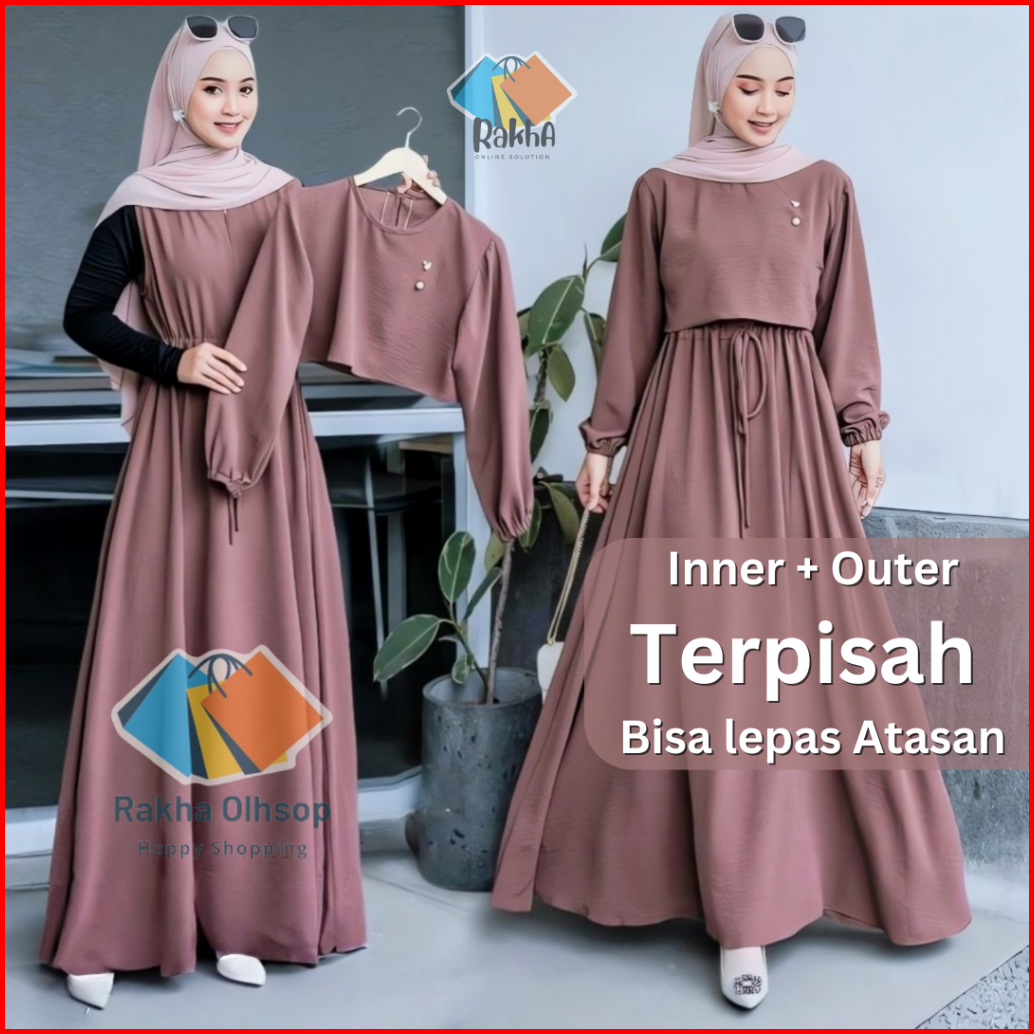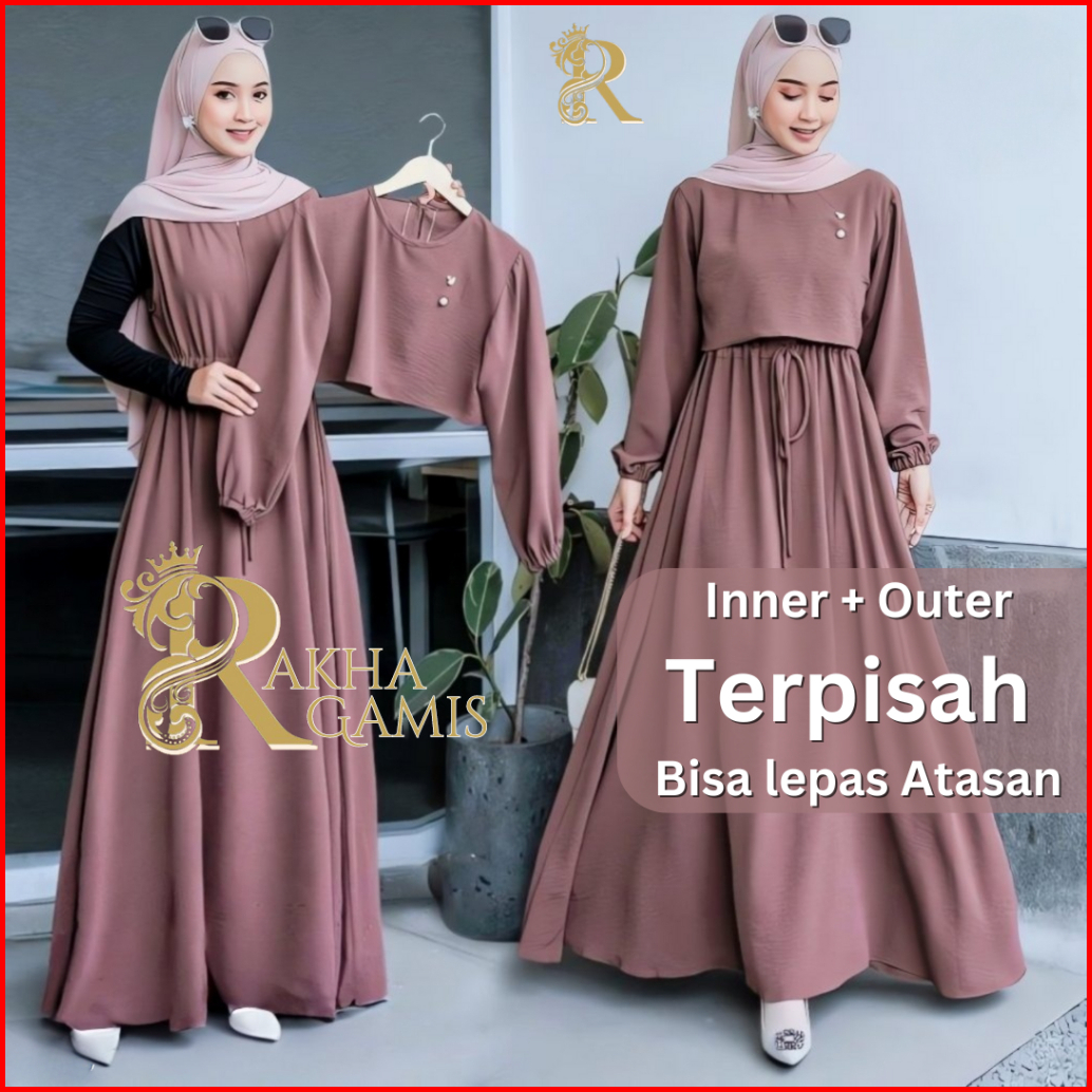 Nafisa Maxy Set 2in1 Inner Outer Crop Setelan Gamis Polos Terbaru 2024 Muslimah Baju Setelan Mocca
