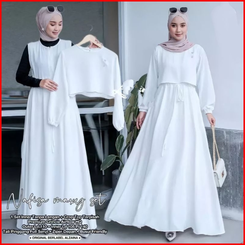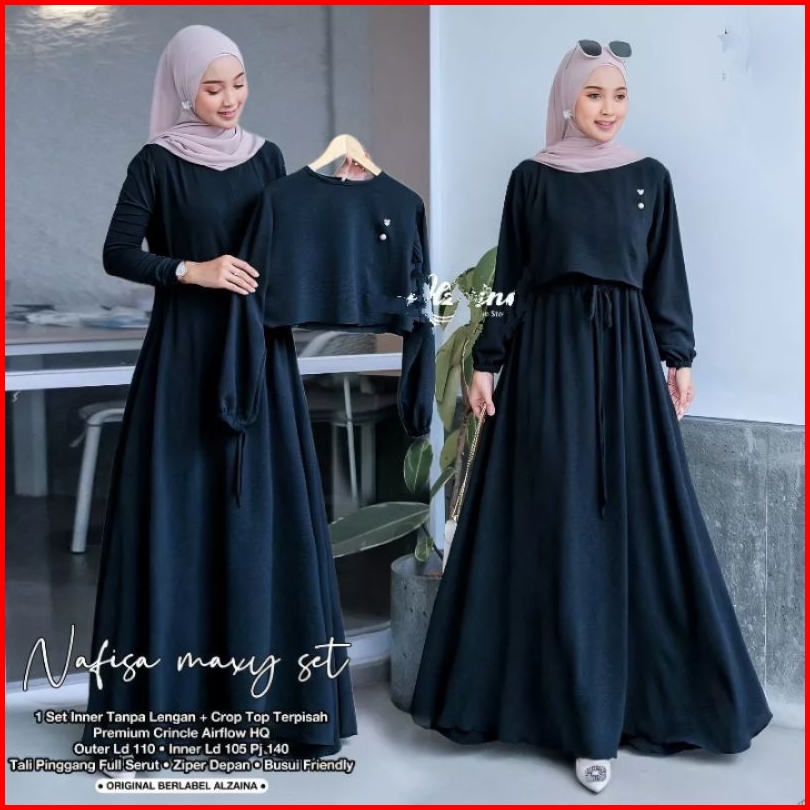 Nafisa Maxy Set2in1 Inner Outer Crop Gamis Set Crinkle Airflow Gamis Jumbo Gamis Wanita Terpisah