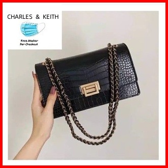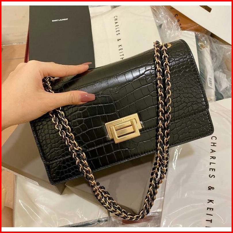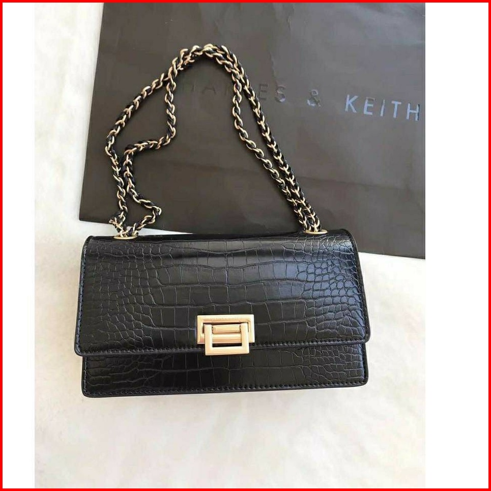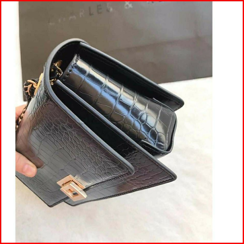 Tas Ch4rlesnkeith Woden Boxy Croco Chain Sling Bag 8817
