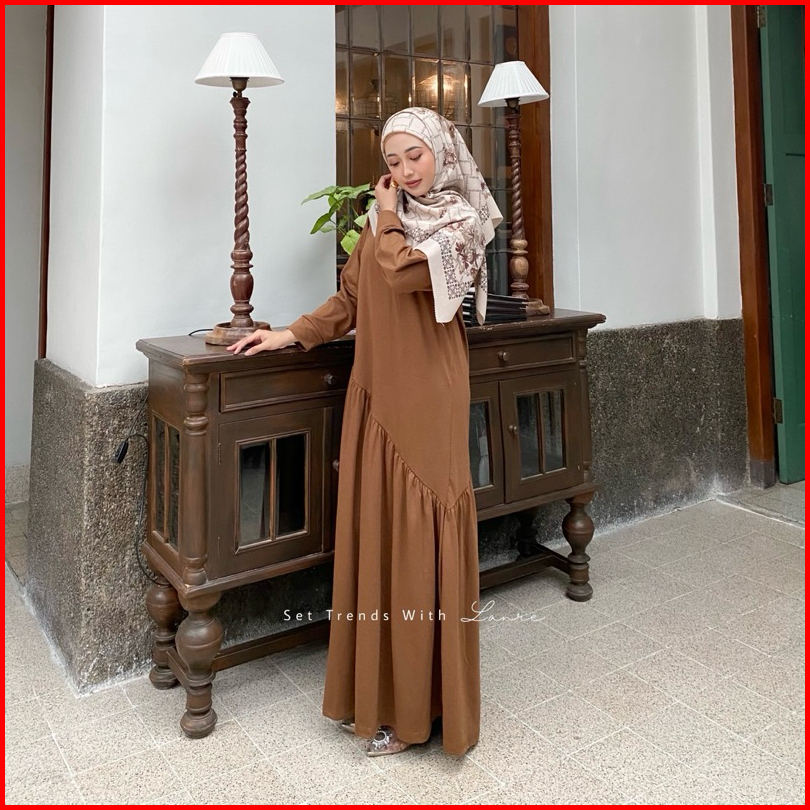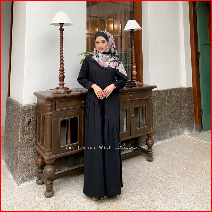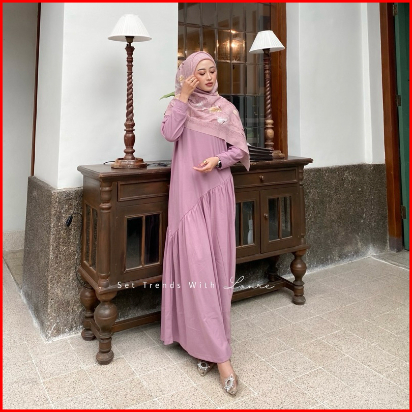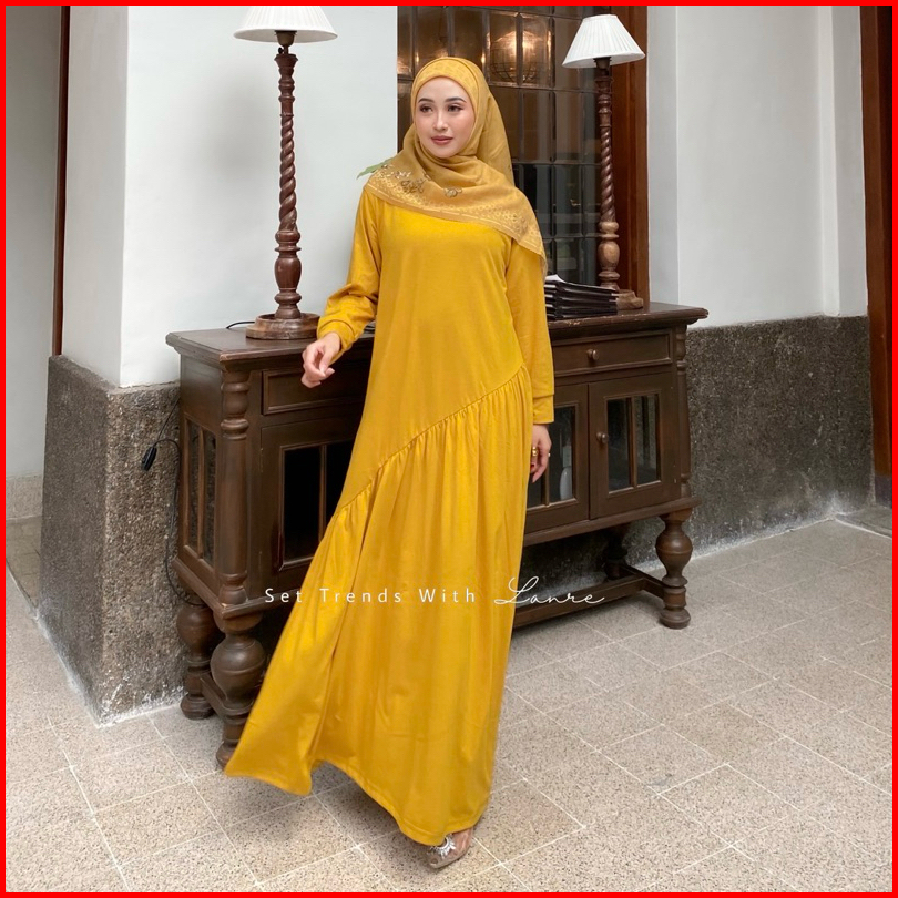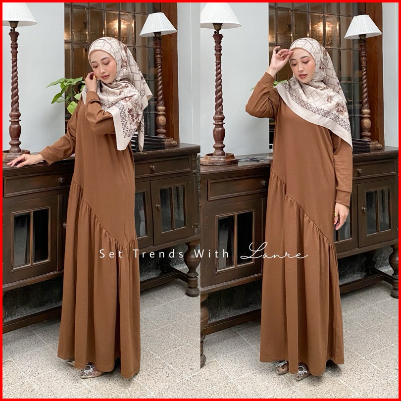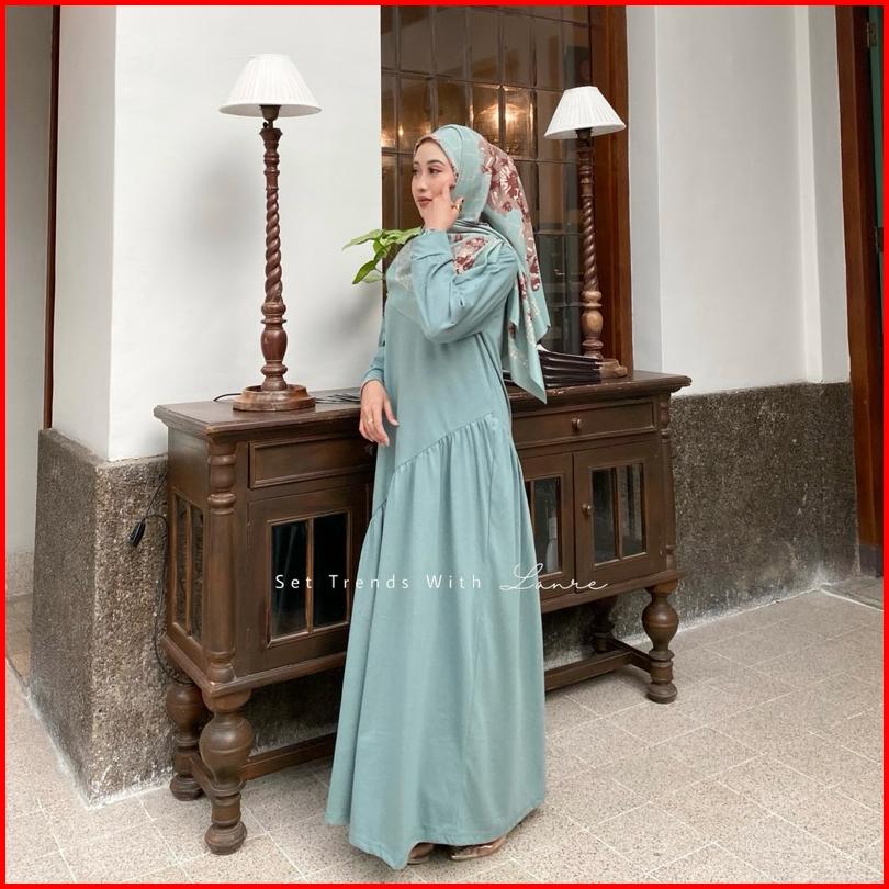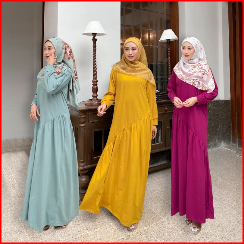 Sani Dress Bahan Kaos Cotton Combed 24s Gamis Elegan Simple Dress Miring